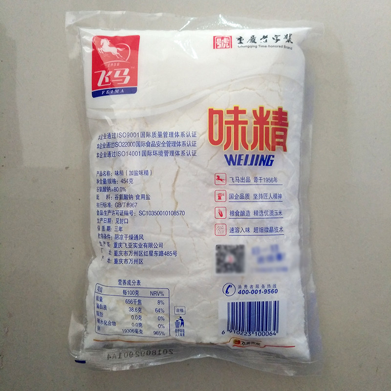 重庆飞马粉末味精454g*2袋炒菜粉体速溶型厨房调味料整箱商用家用