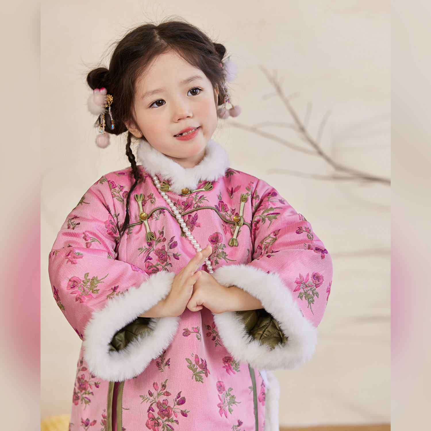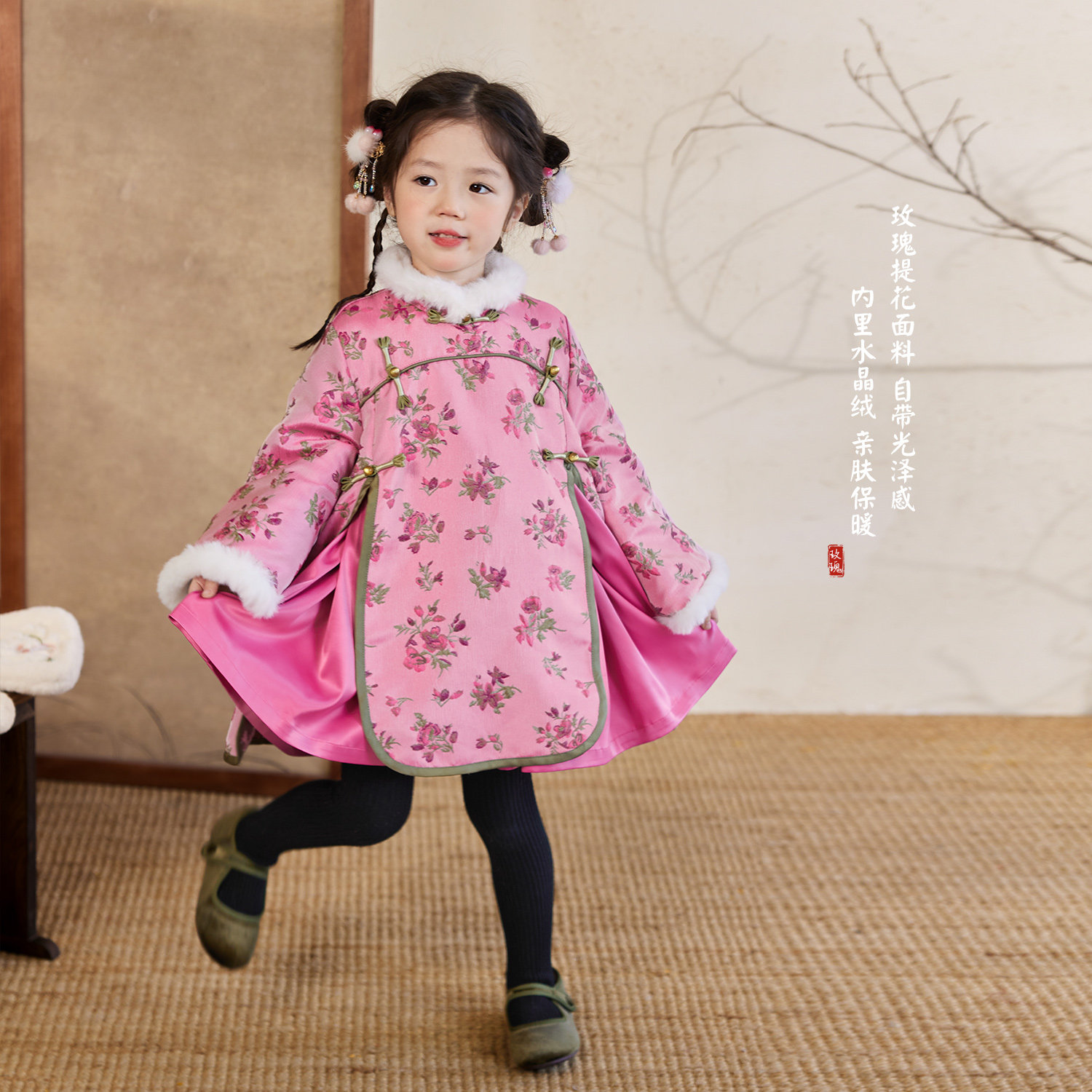 小O宝童装 宝宝碎花新中式旗袍裙女2026新款女童过年新年连衣裙