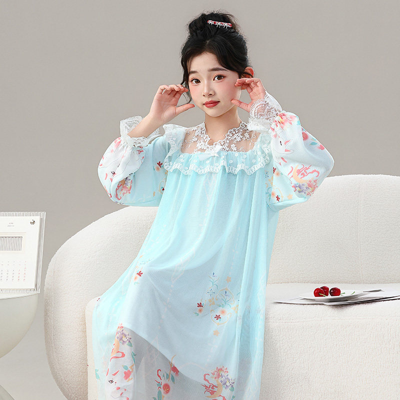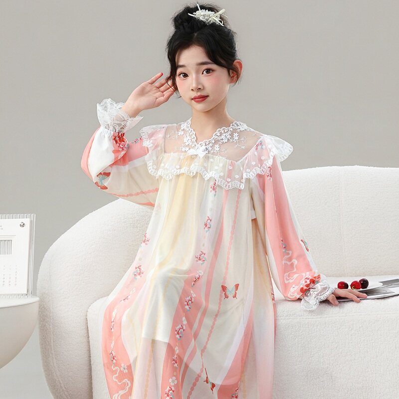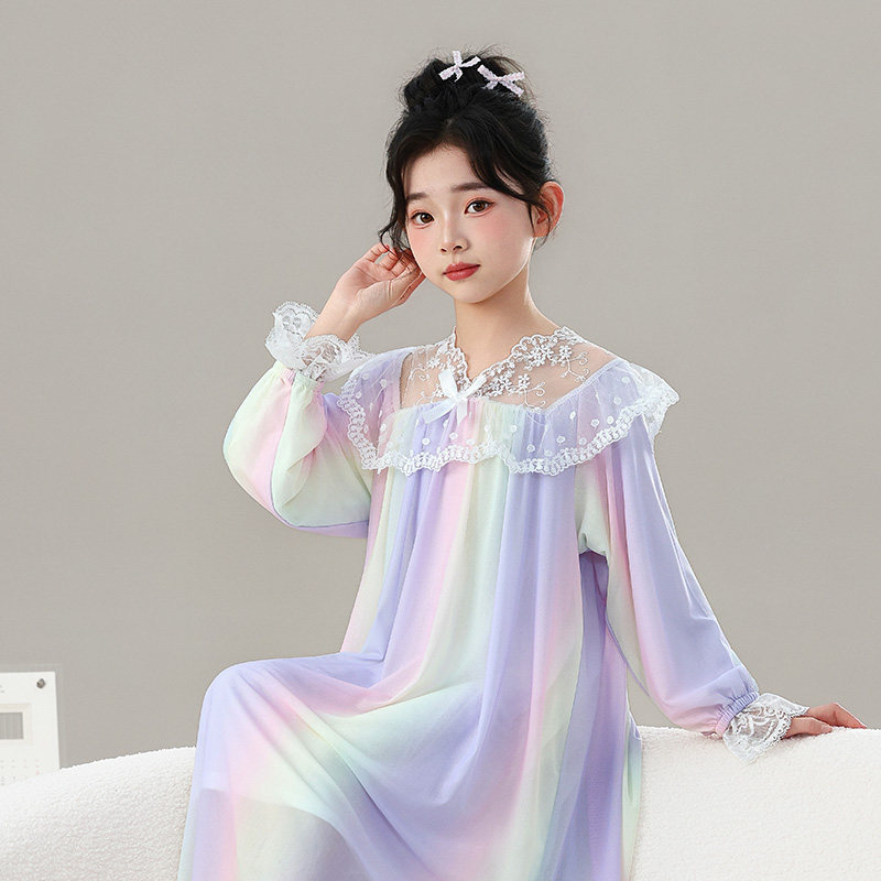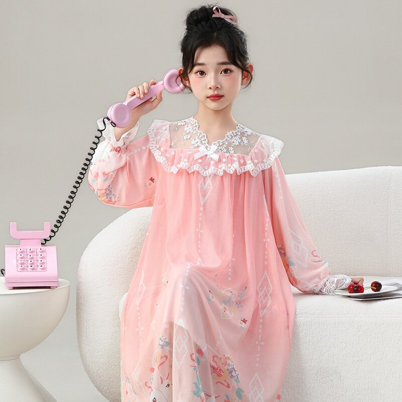 女童莫代尔连衣裙睡衣春秋新款中大儿童夏季薄款长袖网纱公主睡裙