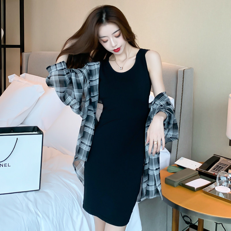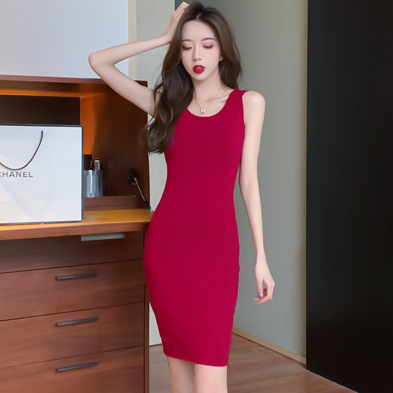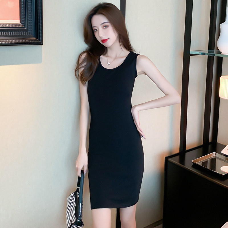 黑色无袖打底背心裙夏季设计感小众欧美紧身吊带连衣裙短款包臀裙