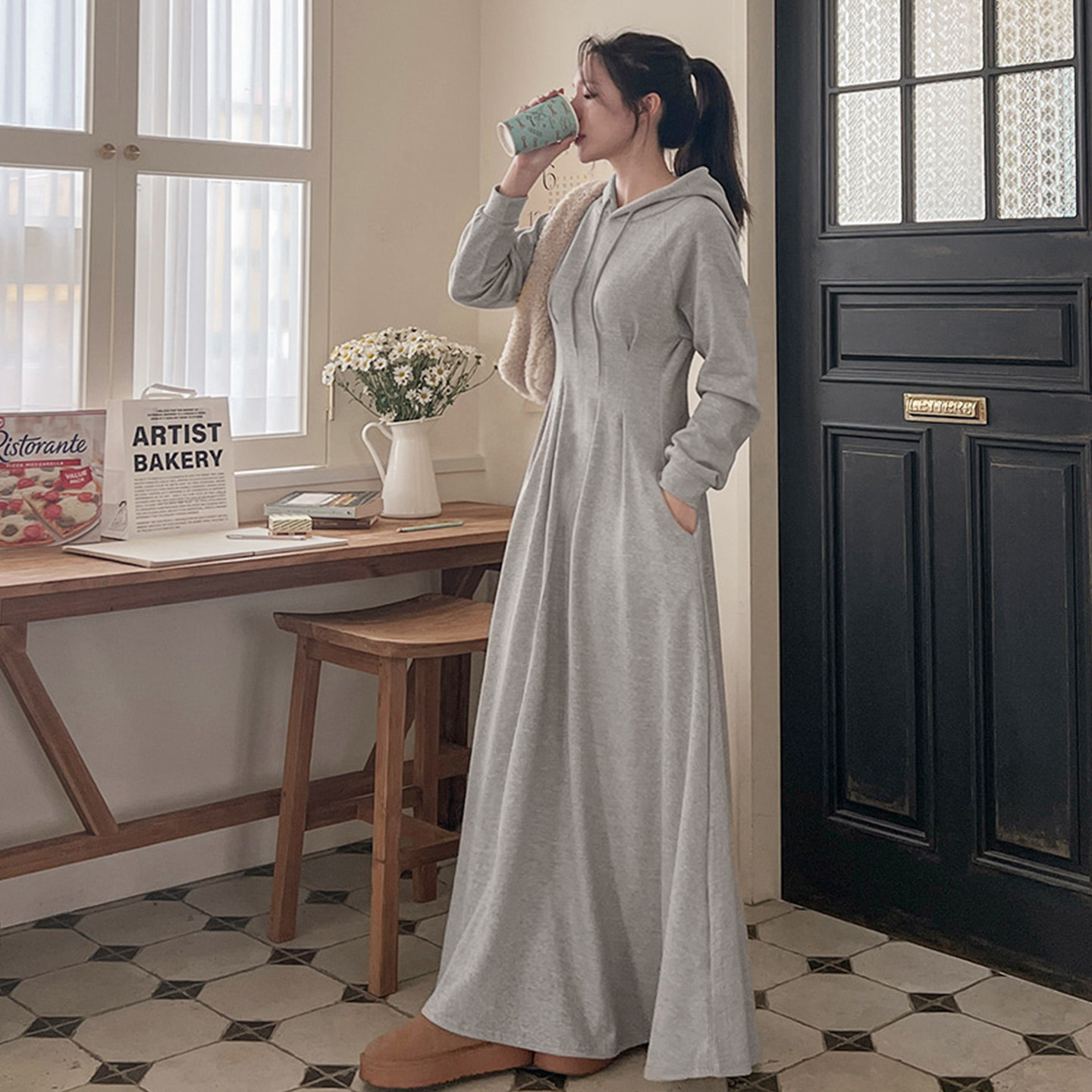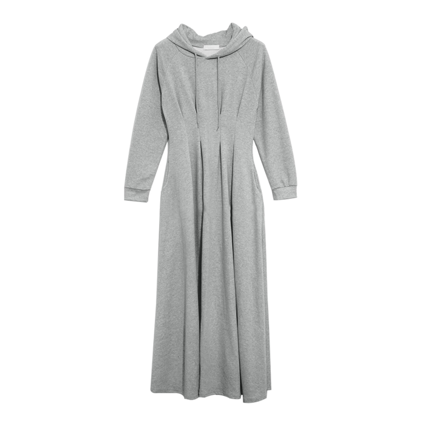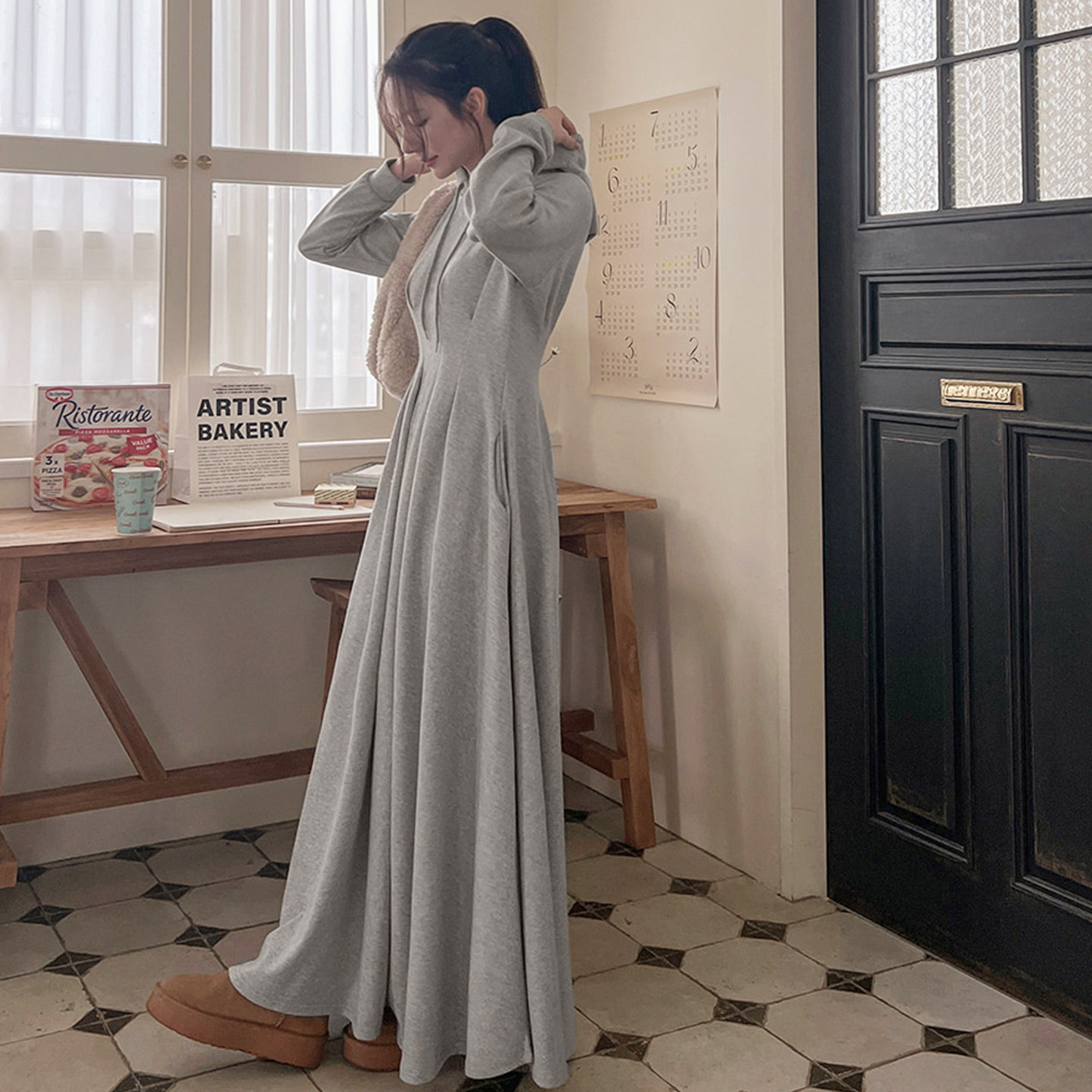 连帽卫衣裙收腰显身材显瘦连衣裙气质大摆裙长款到脚踝高个子休闲