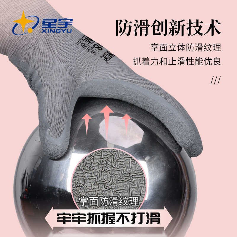 星宇耐磨女士小码乳胶皱纹劳保手套工地防水工作干活专用防滑手套