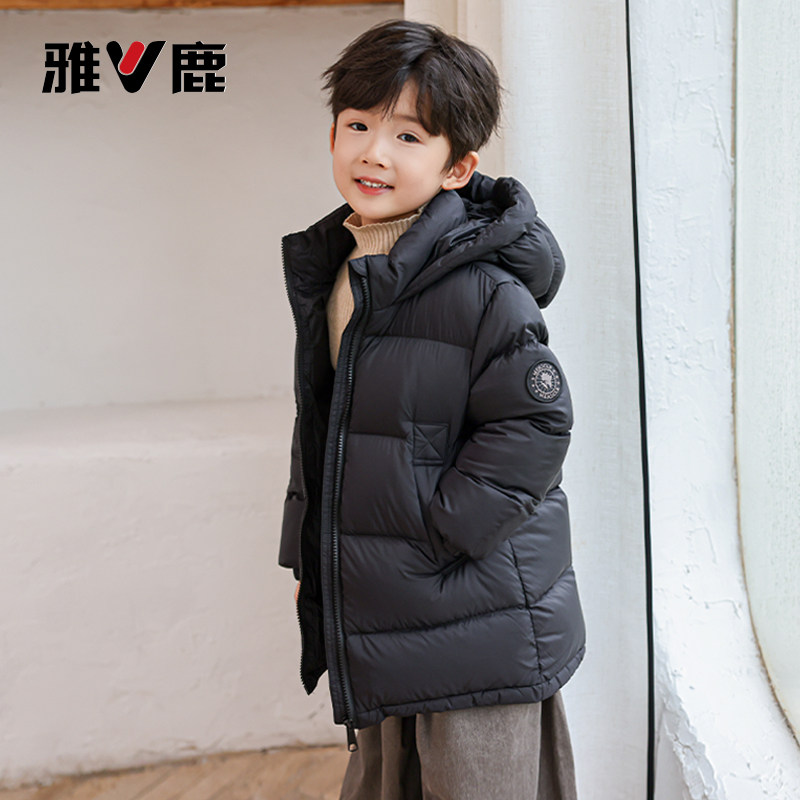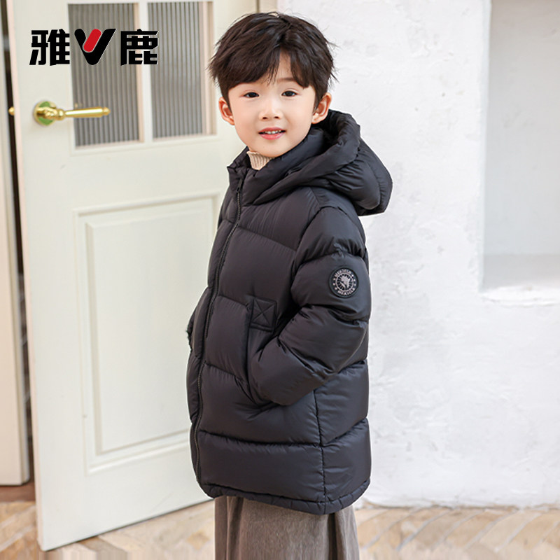 雅鹿2025新款儿童羽绒服中长款加厚小童男童女童宝宝洋气冬季外套