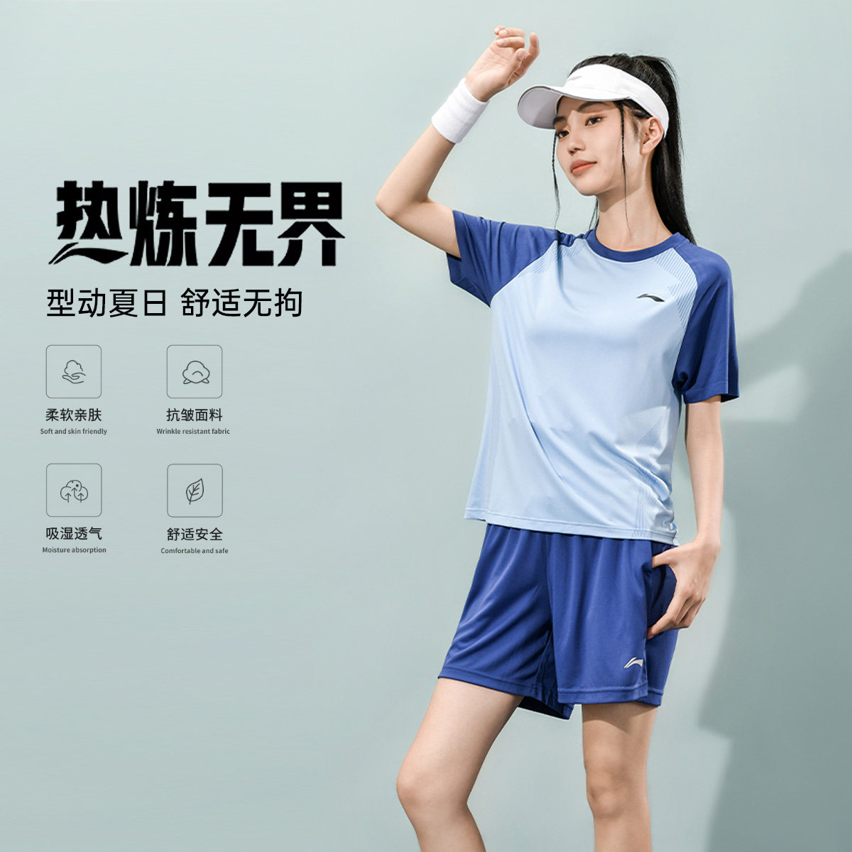 李宁运动套装男女短袖短裤宽松季新款速干透气跑步乒乓羽毛球服