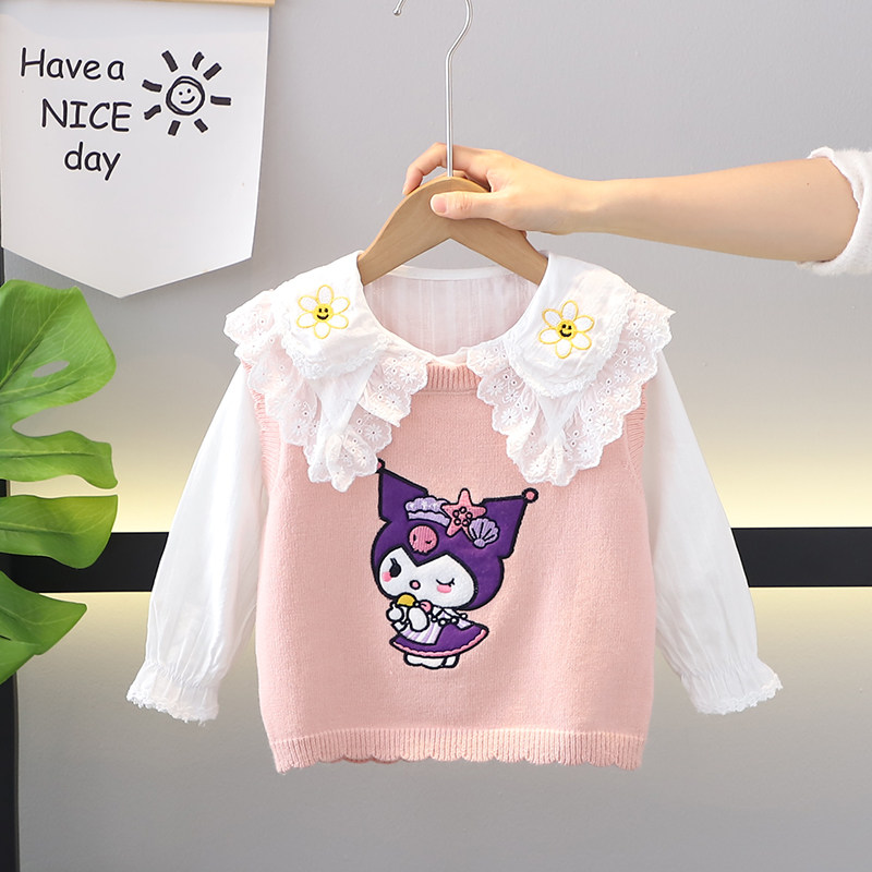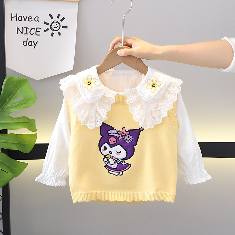 儿童针织马甲衬衣两件套库洛米毛衣背心女宝秋装2025新款女童套装