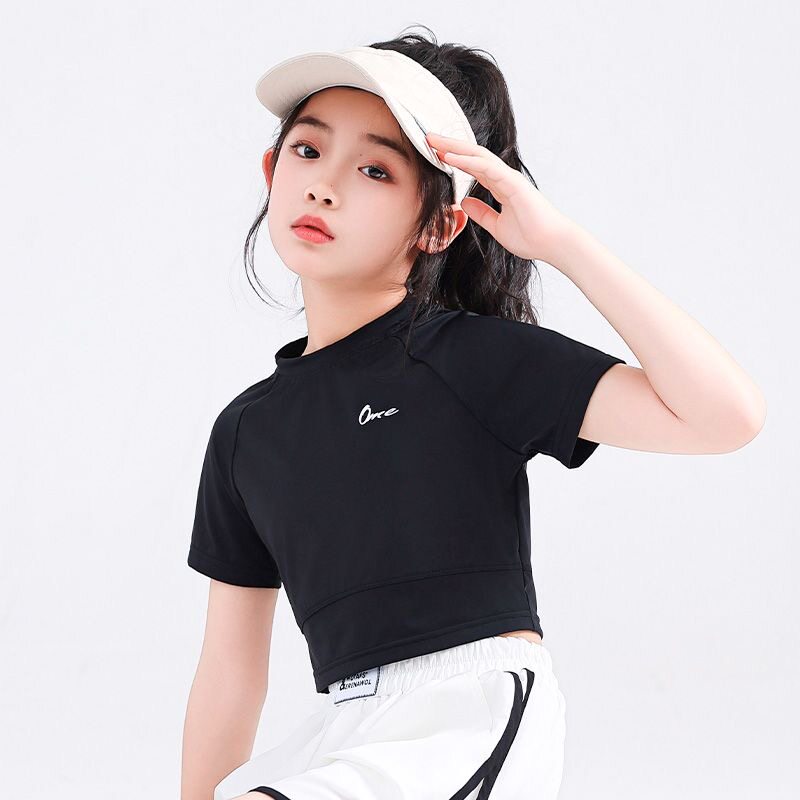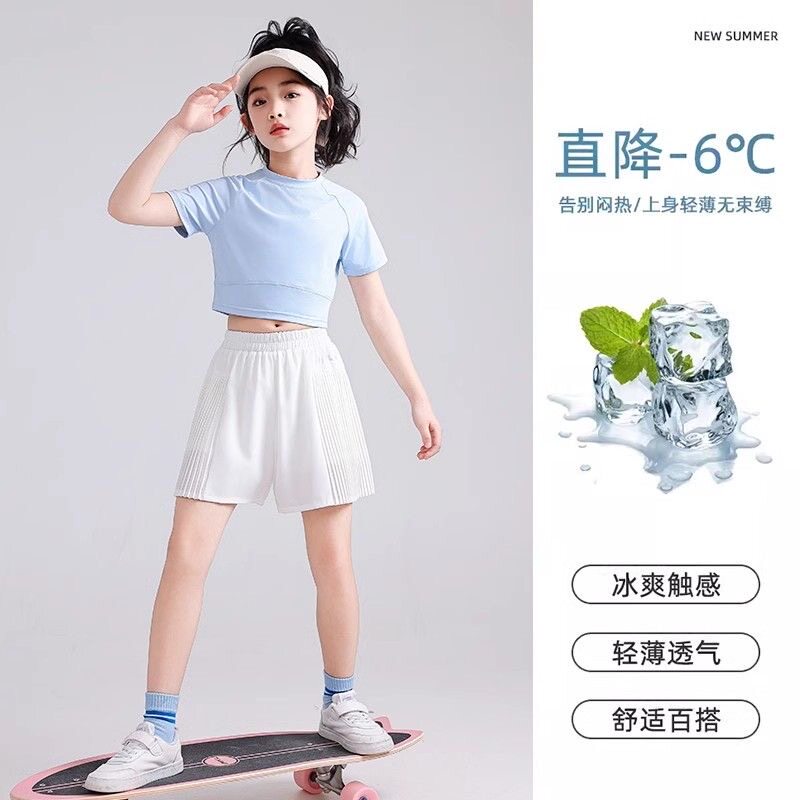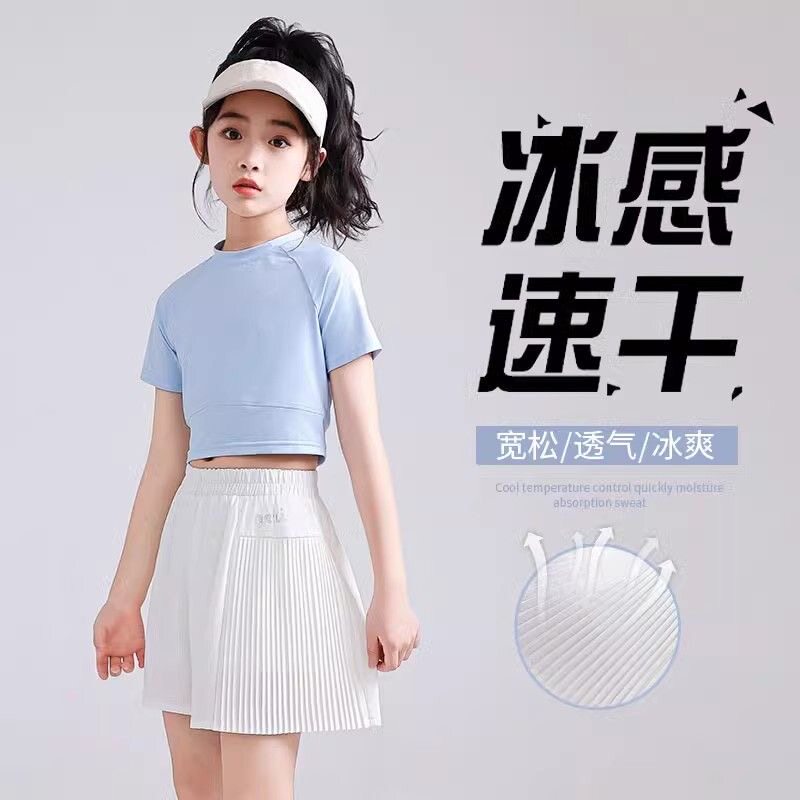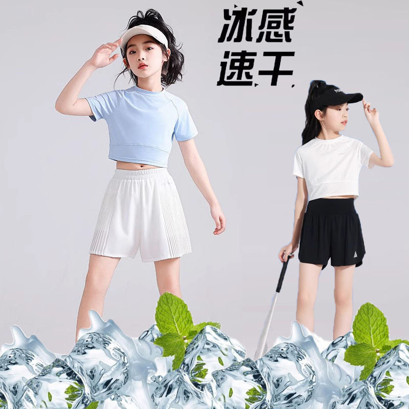 女童短袖t恤运动训练服冰丝儿童跑步上衣夏季网球服体能速干衣短T