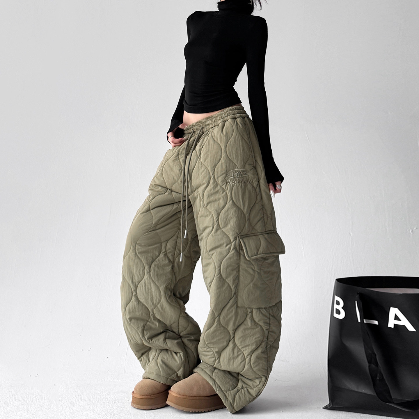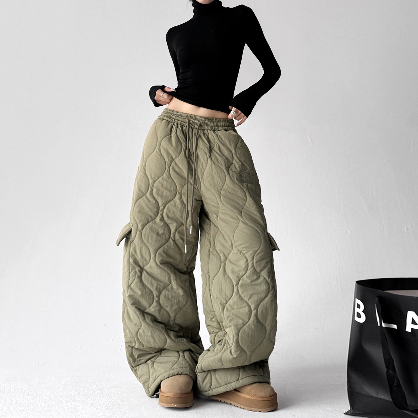 裤子女2026新款今年流行爆款加厚阔腿裤美式宽松保暖休闲棉裤