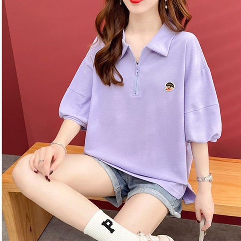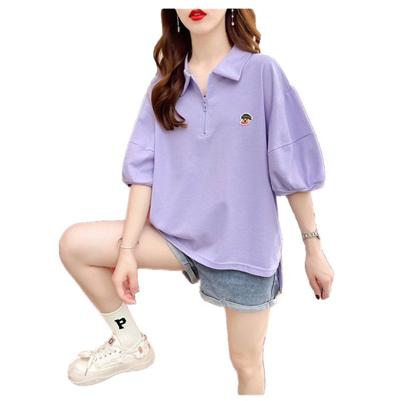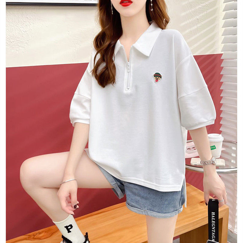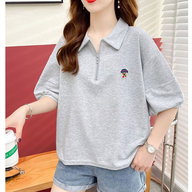 女大童短袖polo领T恤夏季胖女孩宽松大码13岁初中生韩版洋气上衣