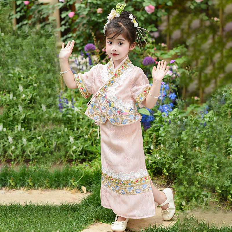 女童夏季连衣裙西双版纳民族傣族服装儿童小女孩汉服套装2026新款