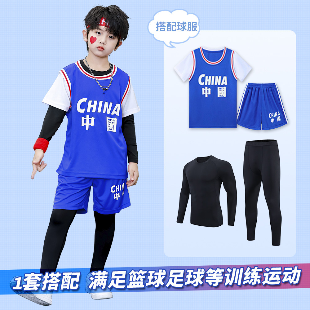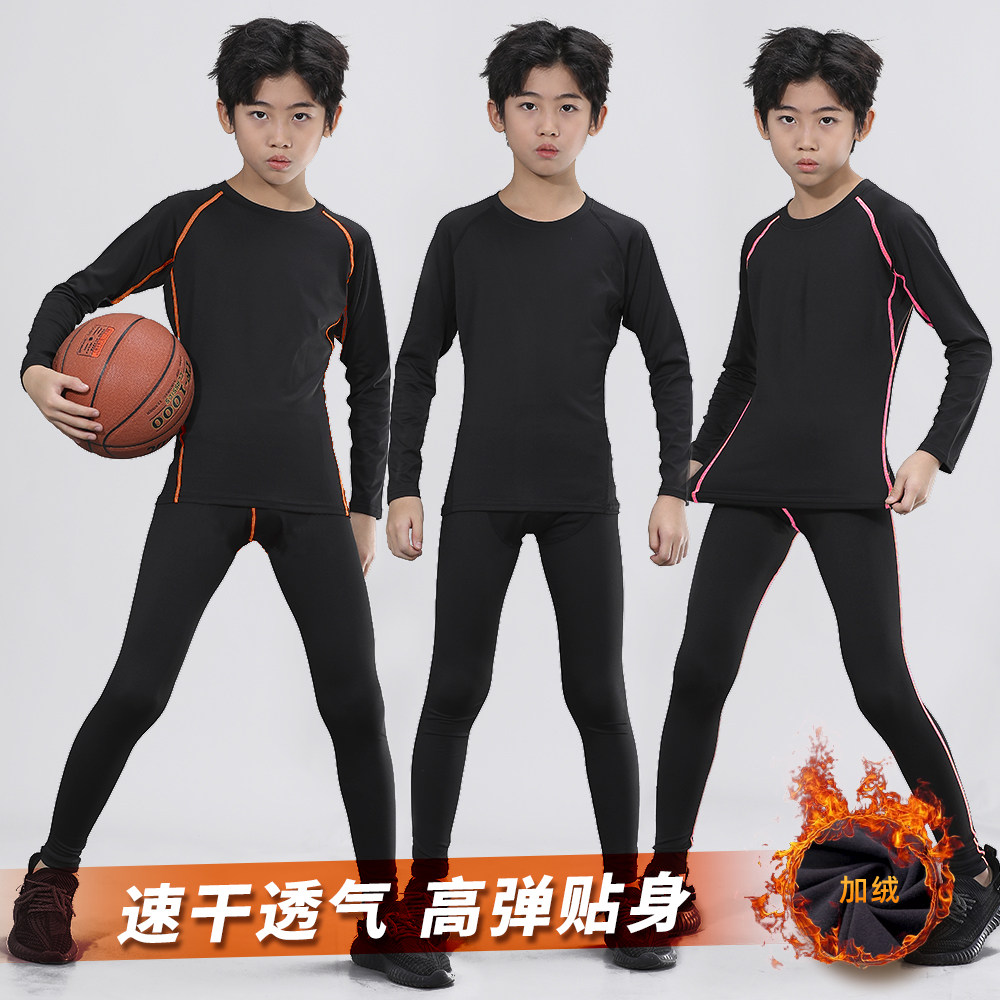 儿童紧身衣速干衣打底训练服长袖男女童成人足球篮球运动健身套装