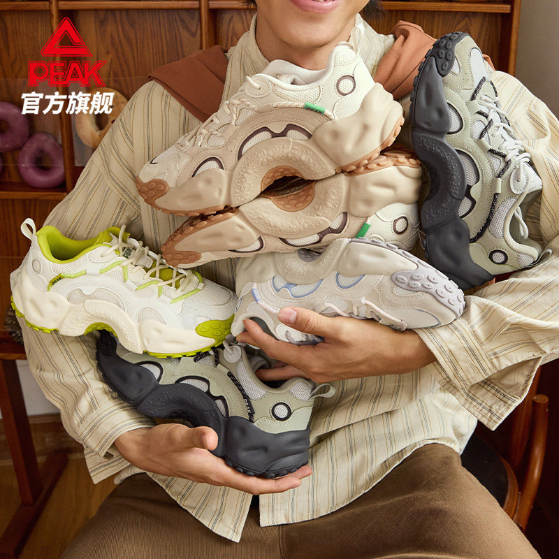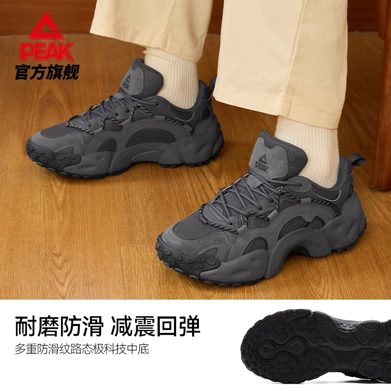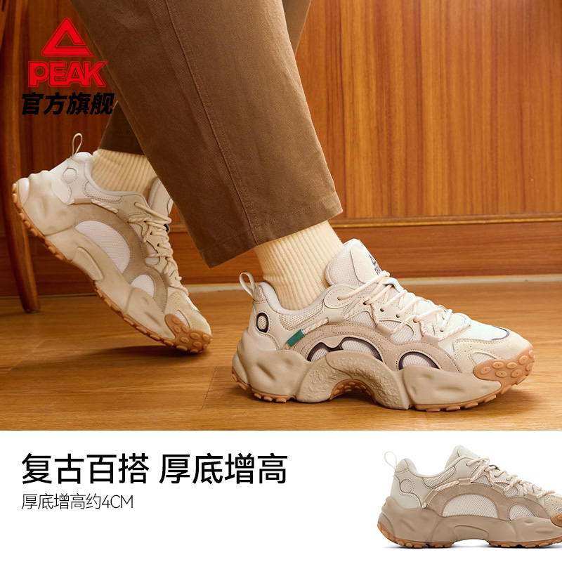 匹克态极贝果鞋春季黑色休闲鞋男鞋厚底增高复古老爹鞋女运动鞋