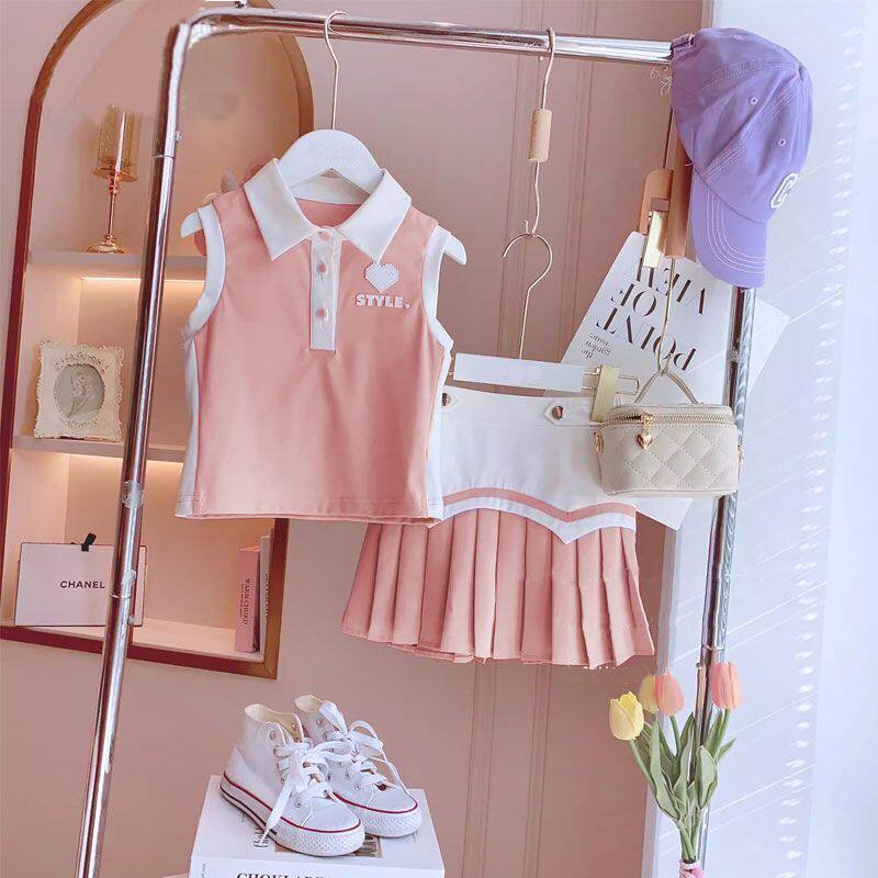 女童夏季套装2026新款韩版时尚儿童小女孩洋气无袖百褶裙子两件套