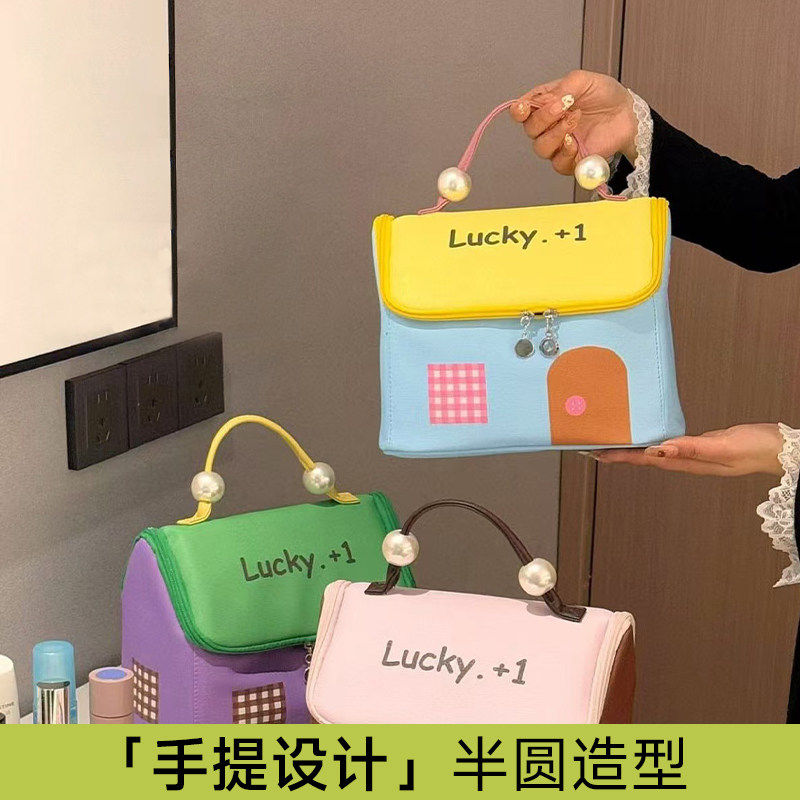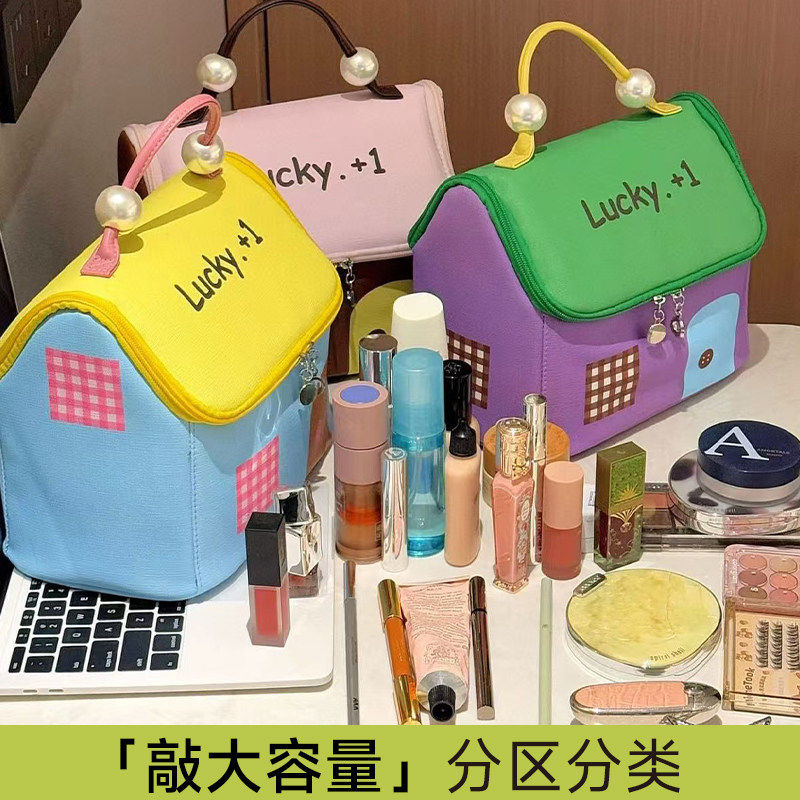 多巴胺房子化妆包女大容量喜悦手提2026新款防水糖果色轻便收纳袋