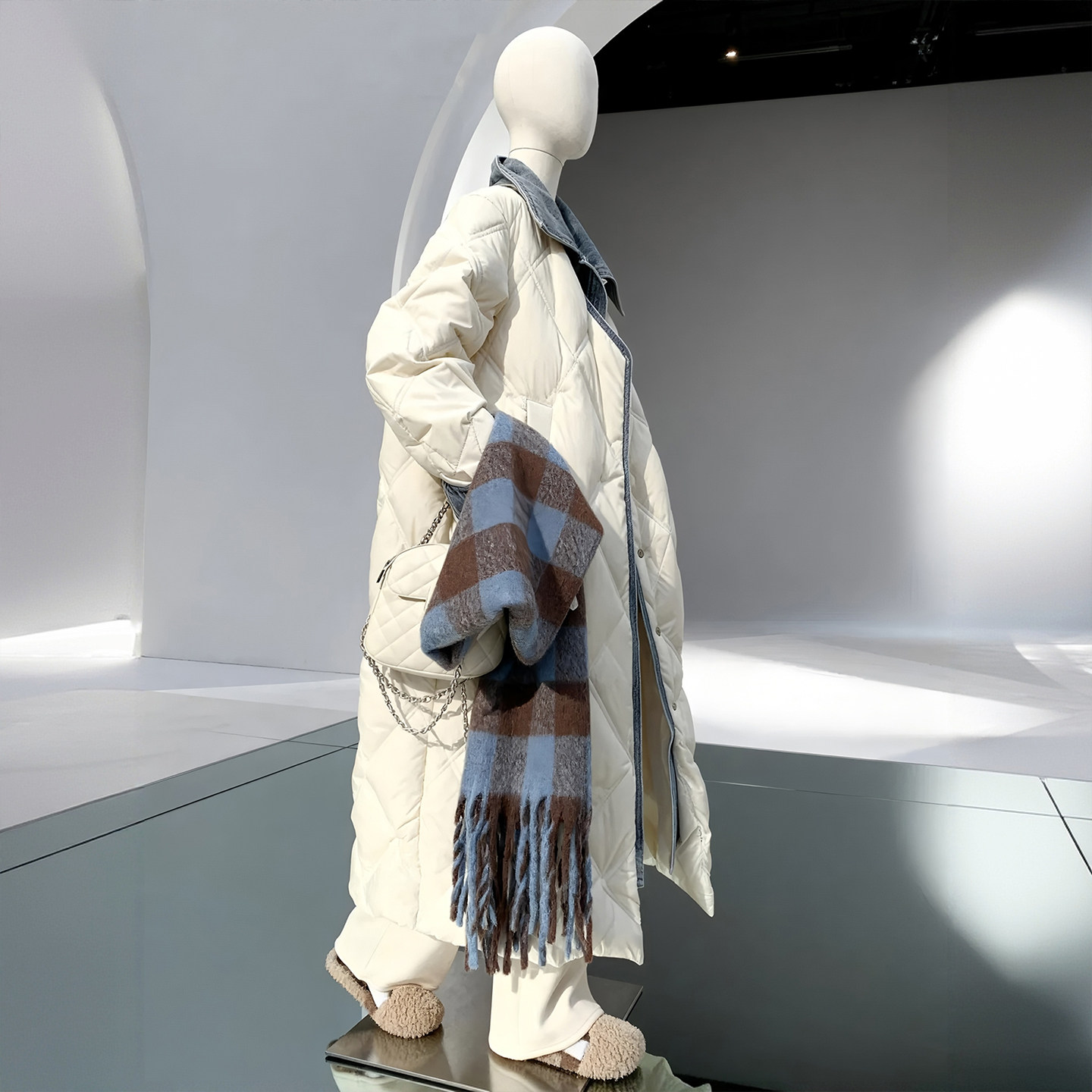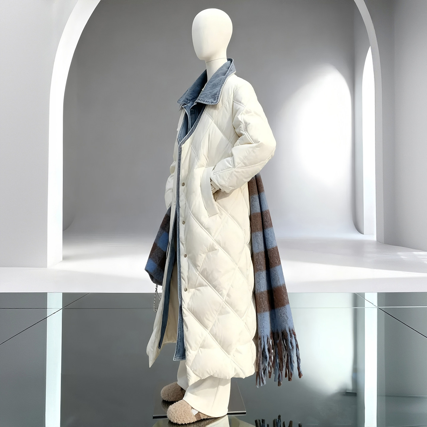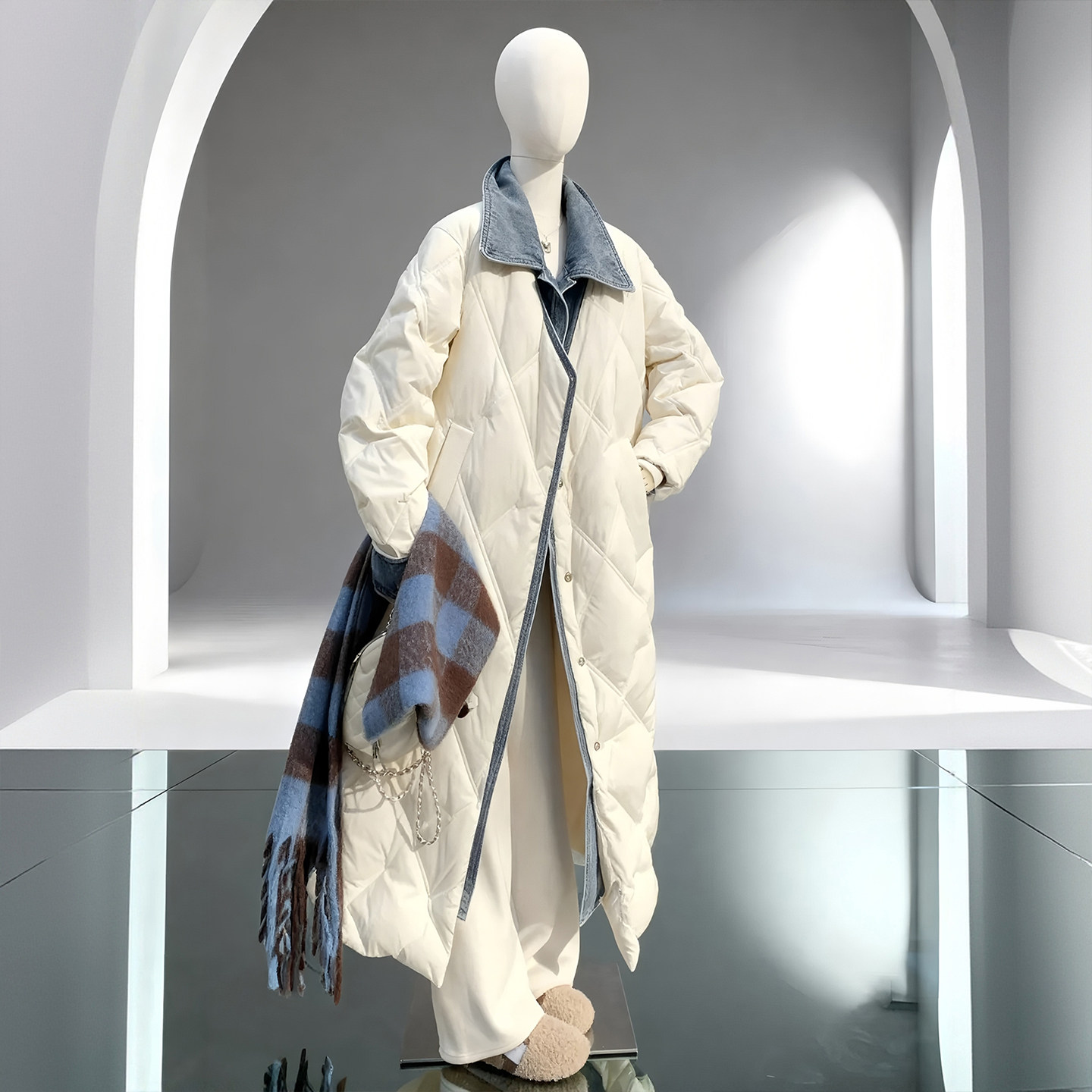 胖mm特大码小众高级感棉服女款冬季加厚保暖牛仔拼接设计长款外套