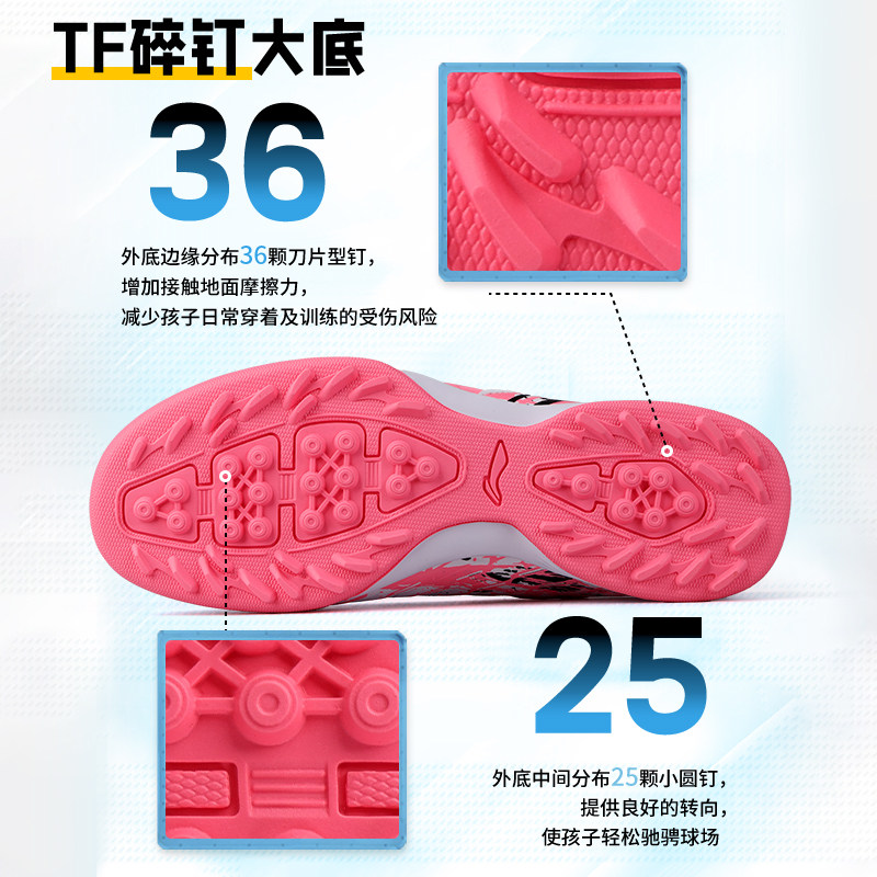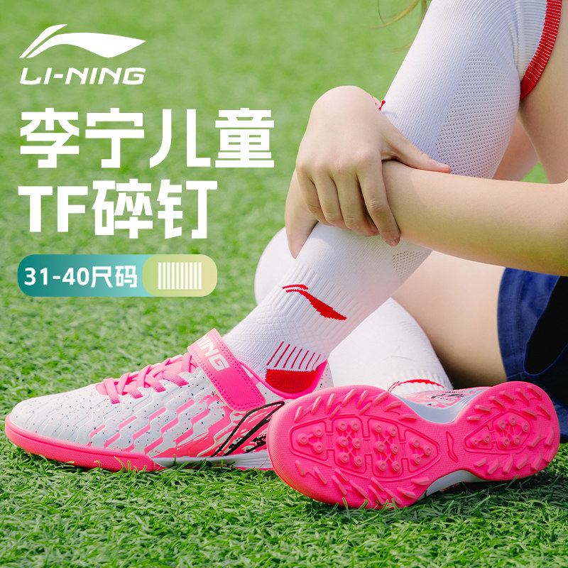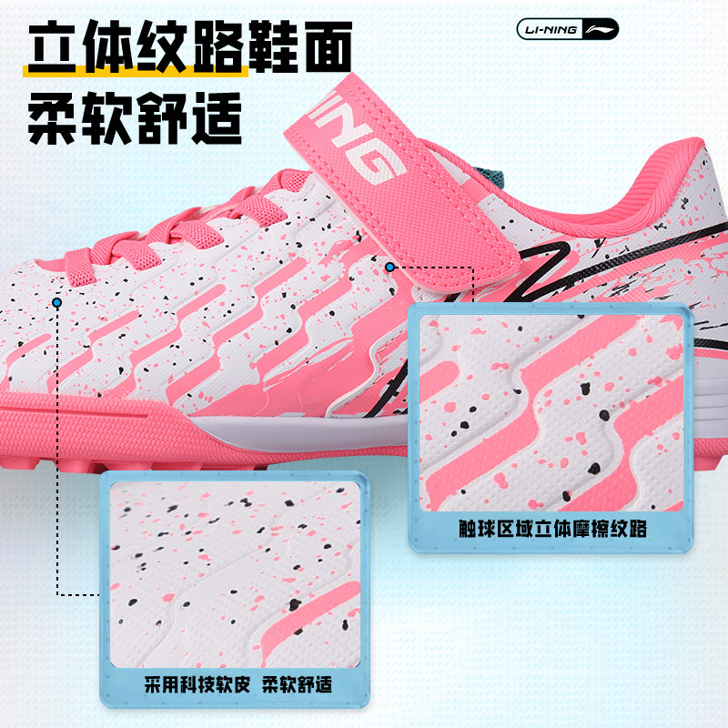 李宁儿童足球鞋女童女孩男碎钉TF魔术贴正品少儿青少年小学生专用