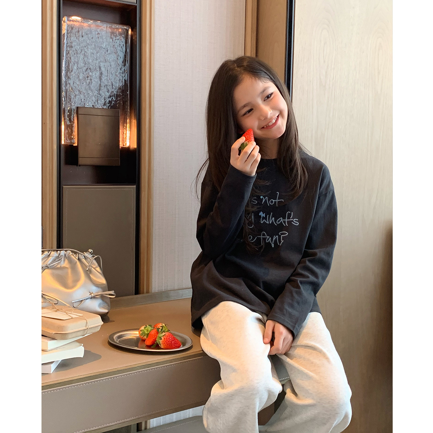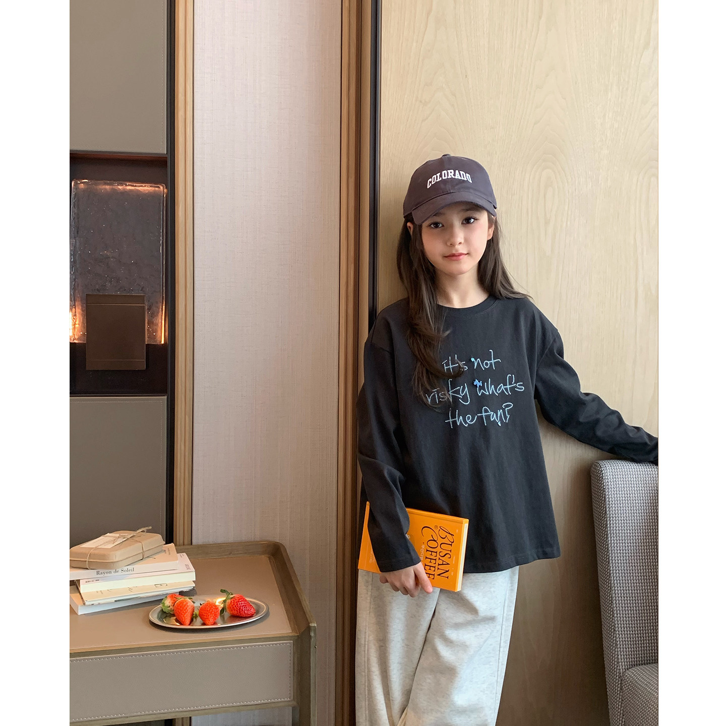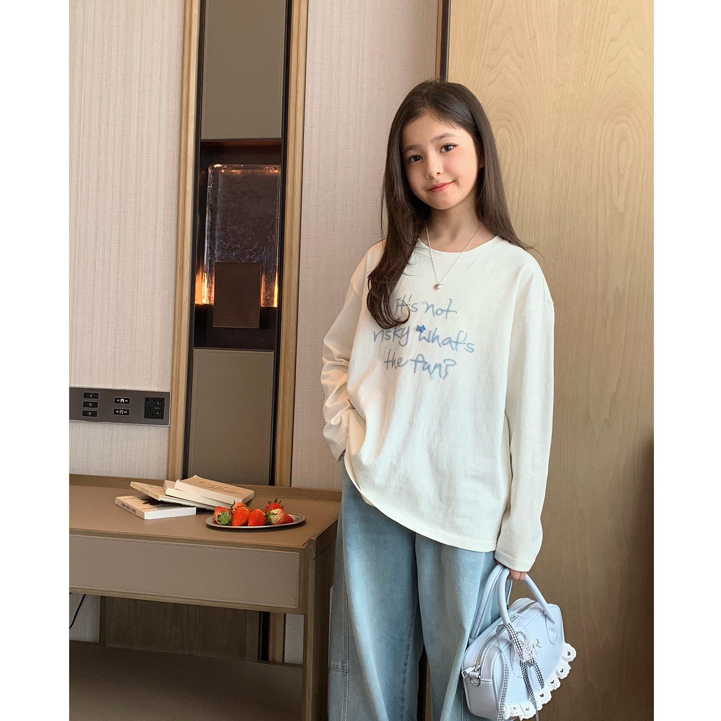 女大童字母刺绣打底衫2026春季新款学生韩版慵懒宽松T恤亲子长袖