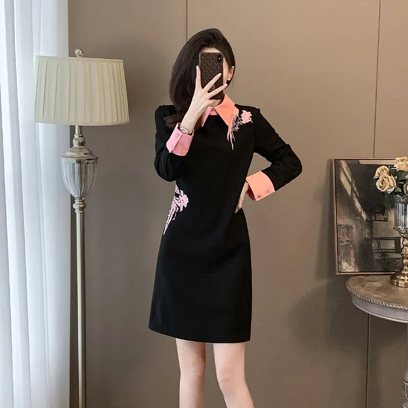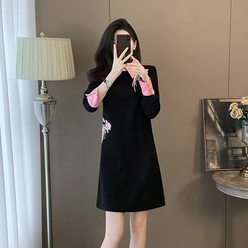 大码300斤女装胖mm遮肚子连衣裙新款显瘦2025春秋冬季中长款裙子