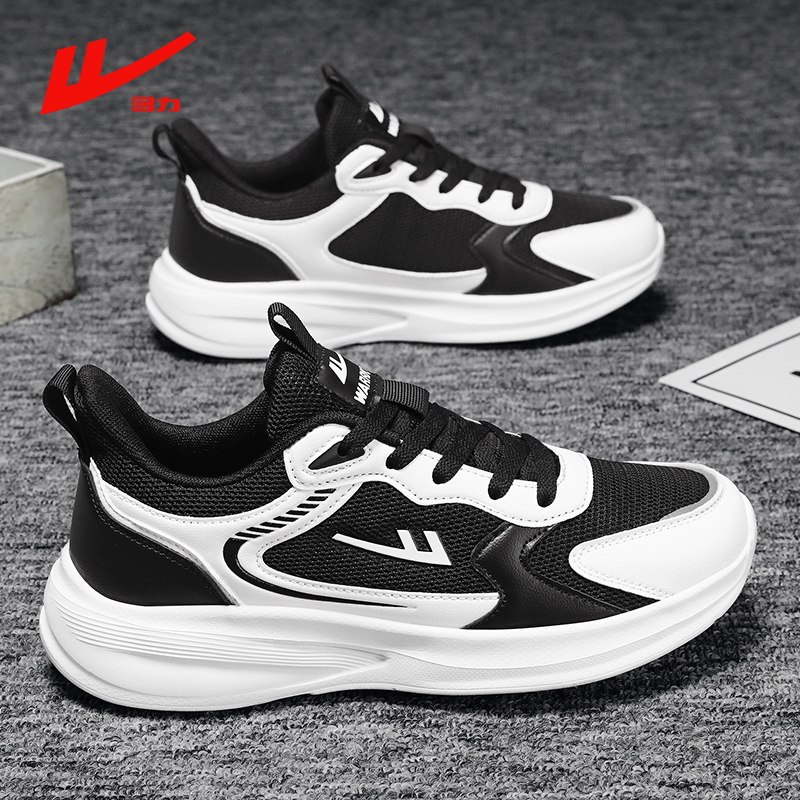 回力男女鞋情侣款运动鞋女款轻便软底超轻黑色网面透气减震跑步鞋