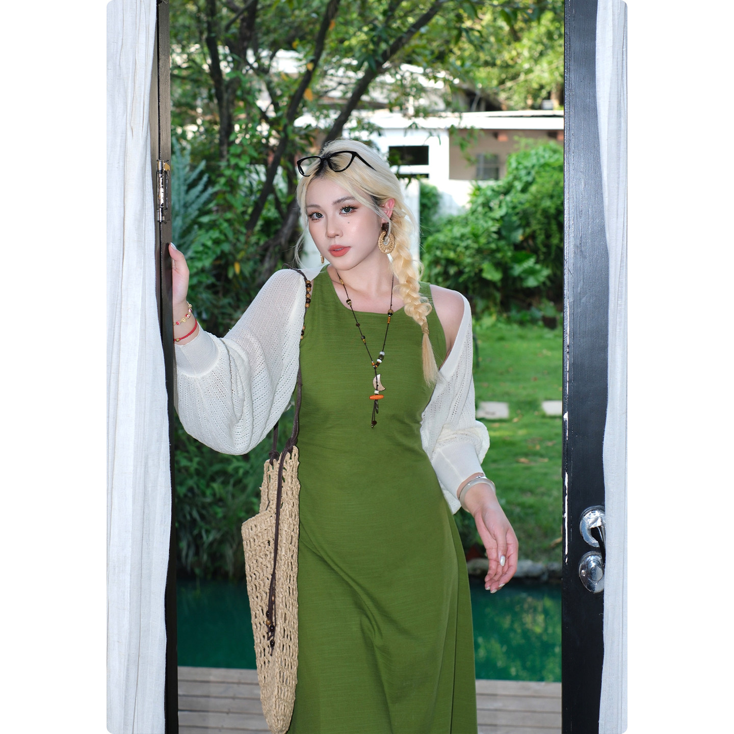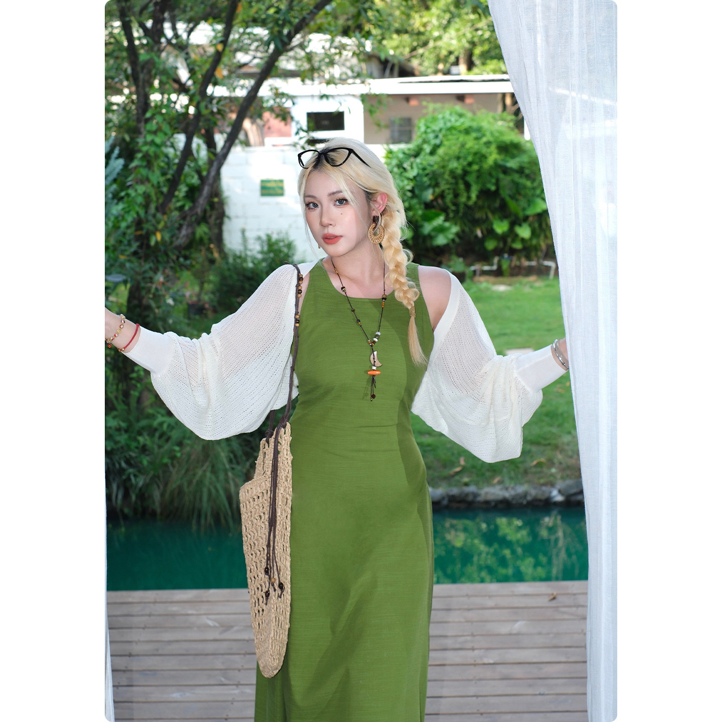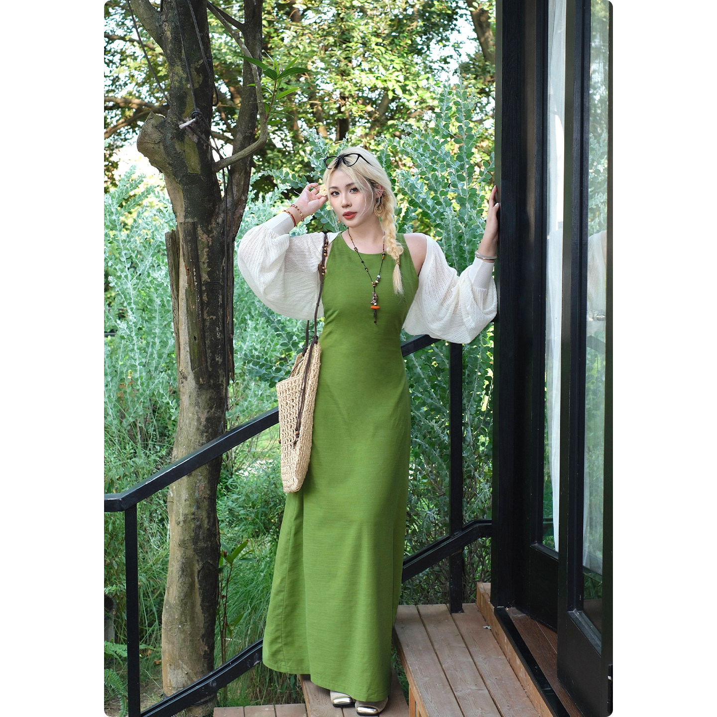 糯米子[风吹树荫]夏季吊带连衣裙女显瘦收腰清凉无袖长裙大码裙子