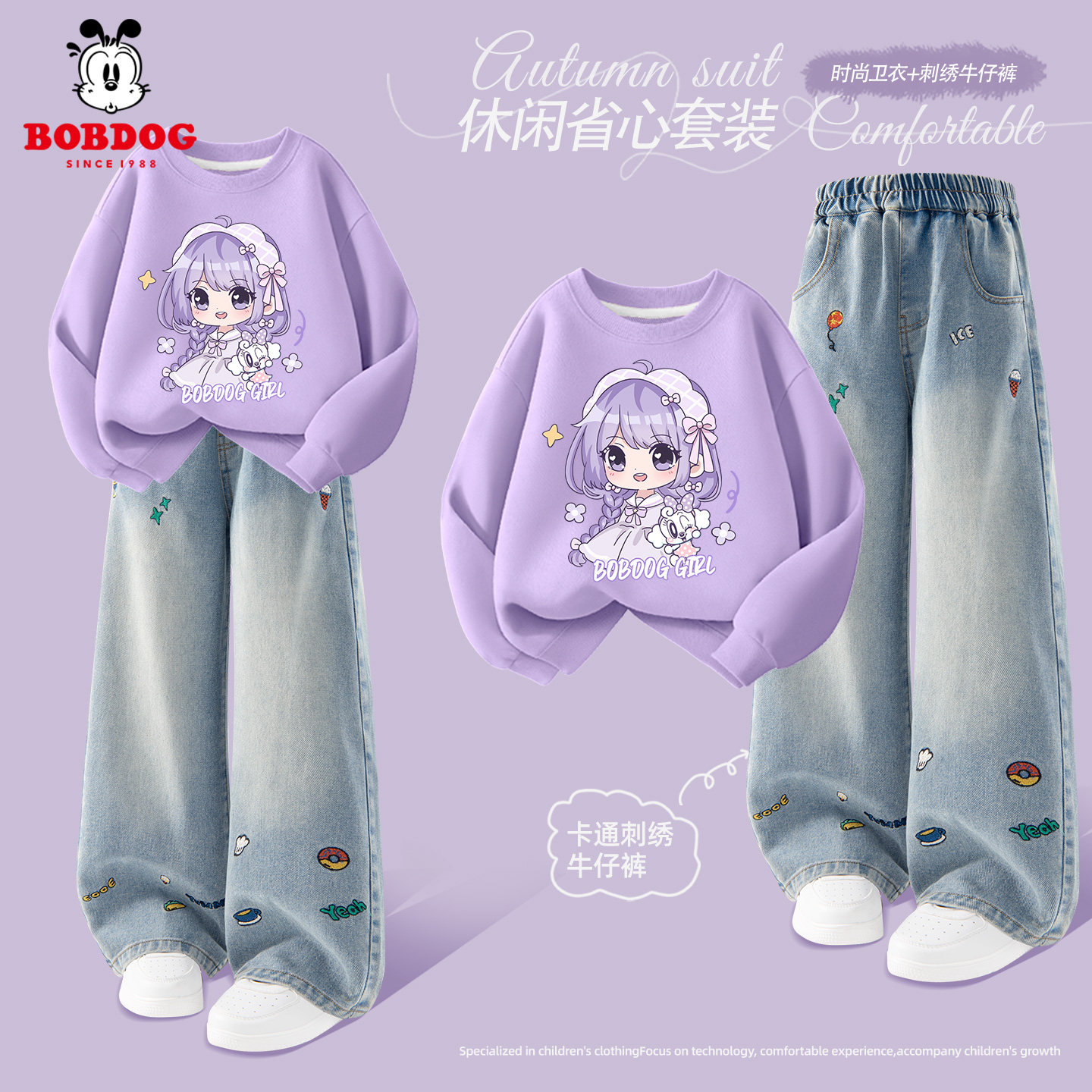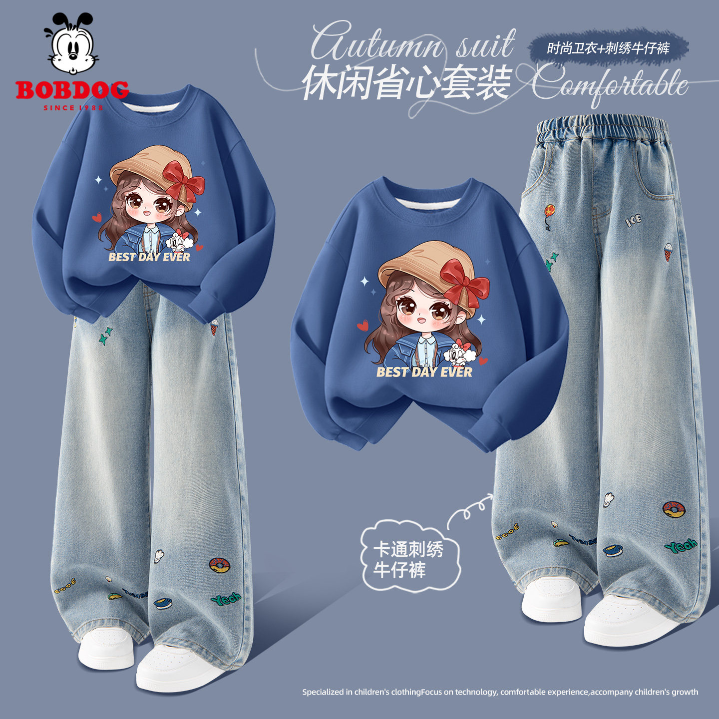 巴布豆女童套装2026新款春秋款儿童红色薄款卫衣复古蝴蝶结阔腿裤