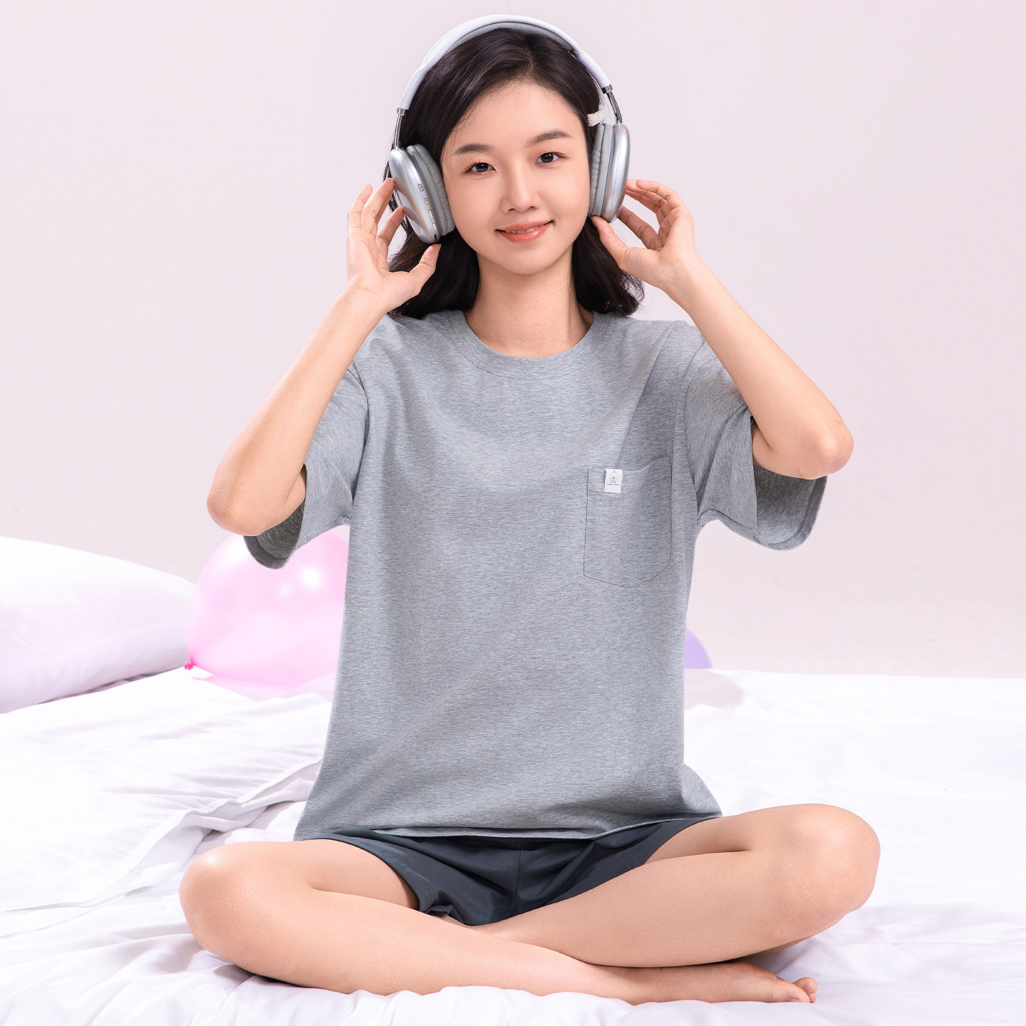 睡衣女夏薄款青少年初中学生少女短袖带胸垫家居服套装纯棉可外穿