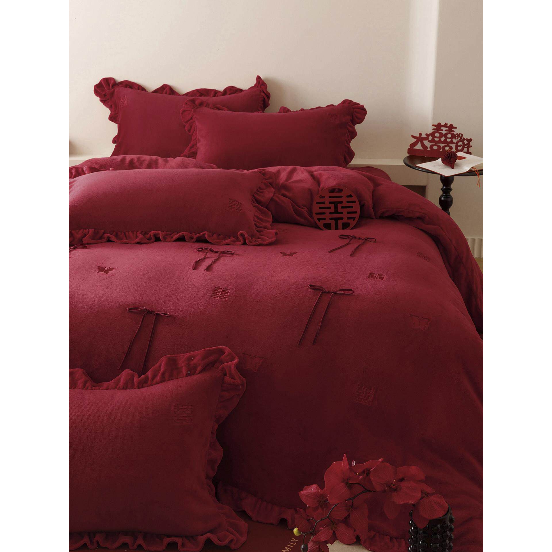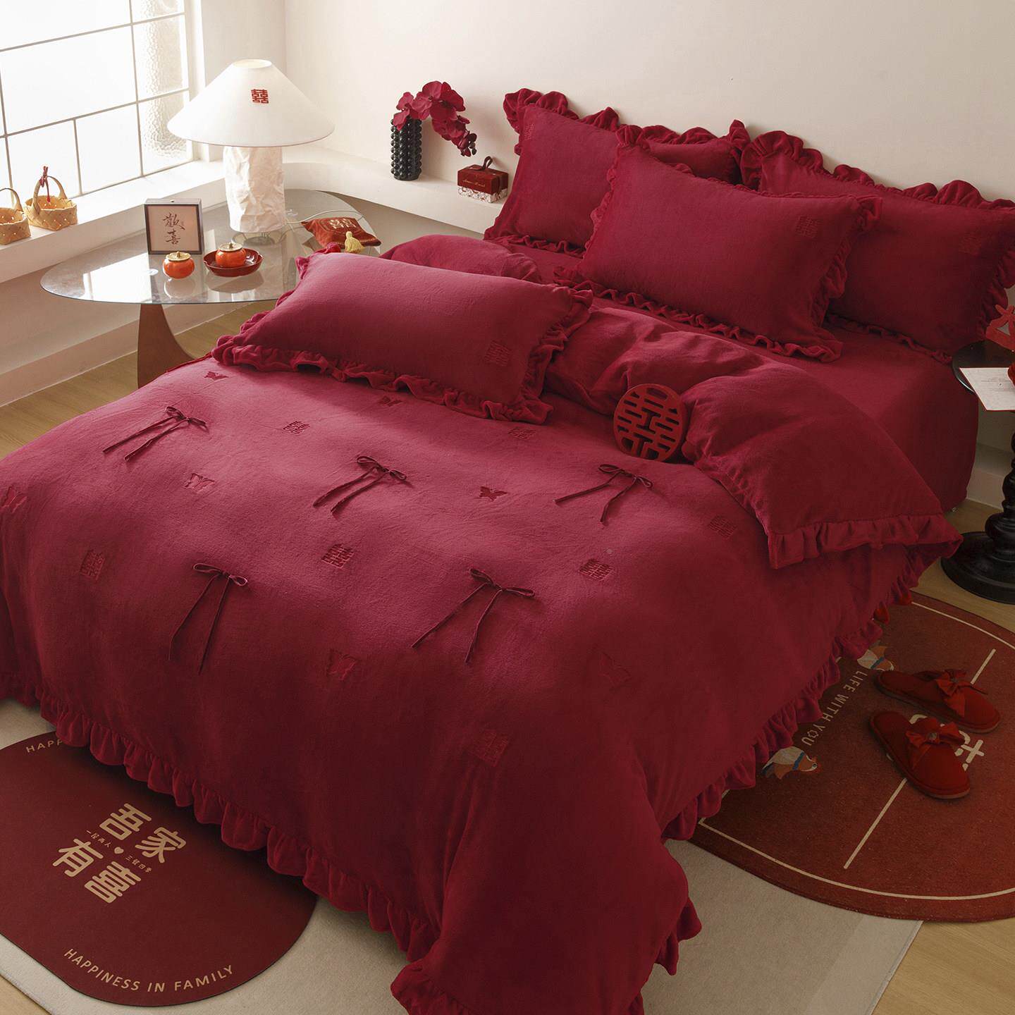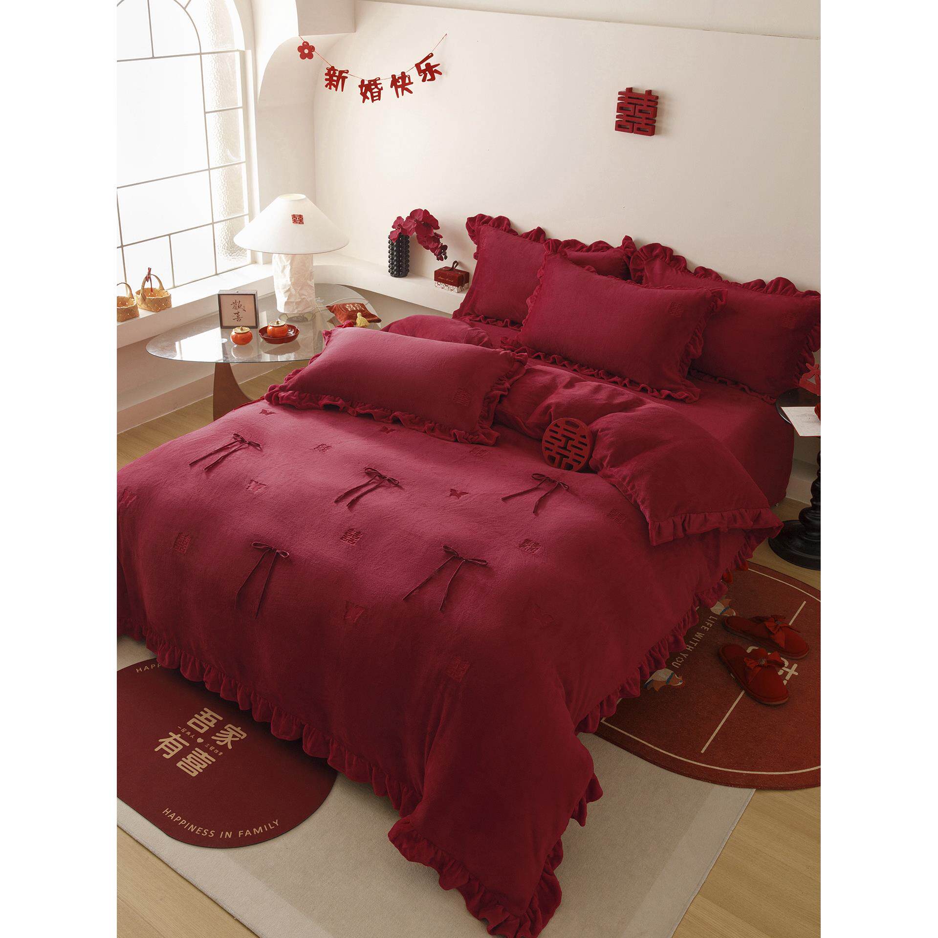 红年轻婚礼大色婚庆结婚四件套冬季牛绒被人套公主风立体蝴HUY奶