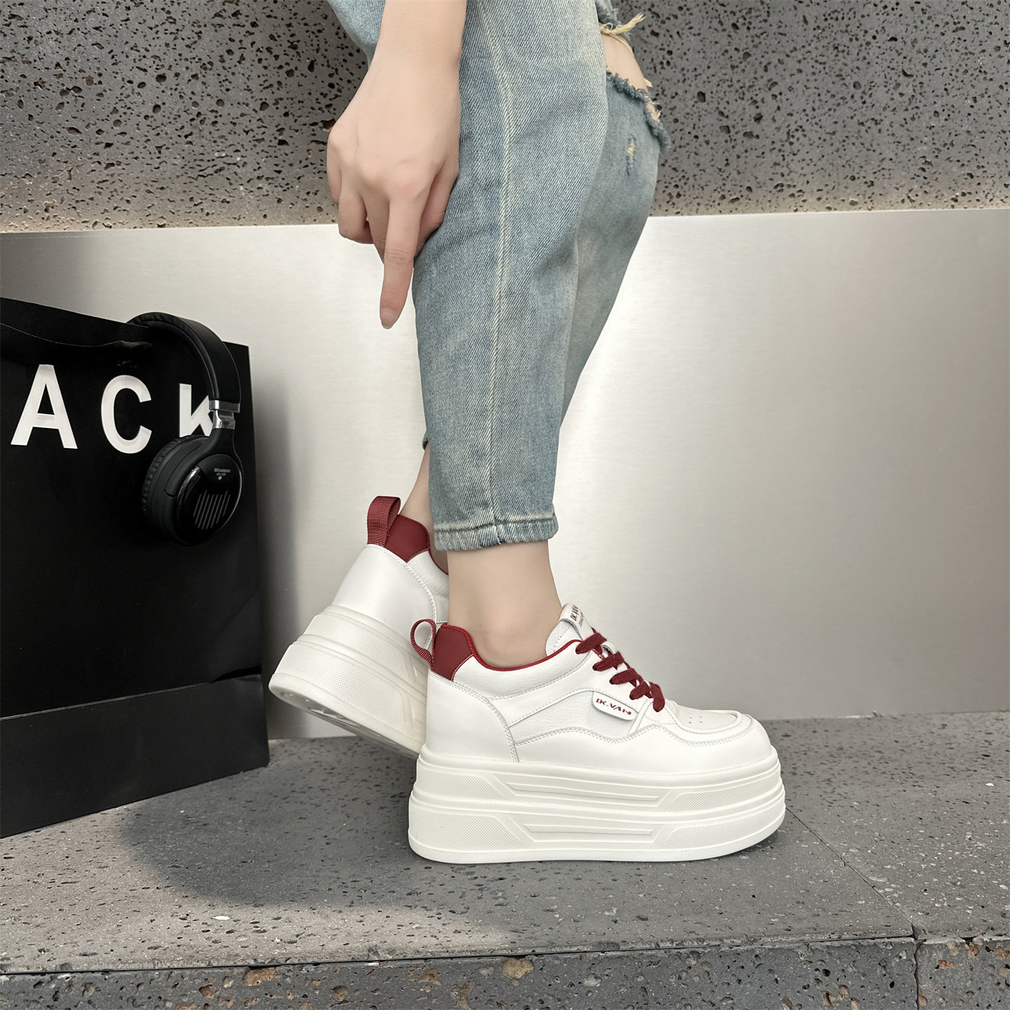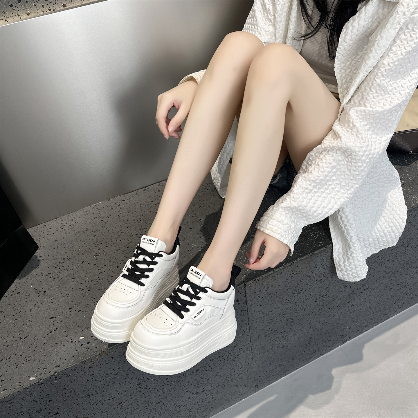 工厂原单特价8CM内增高真皮厚底小白鞋女秋季小个子松糕休闲板鞋