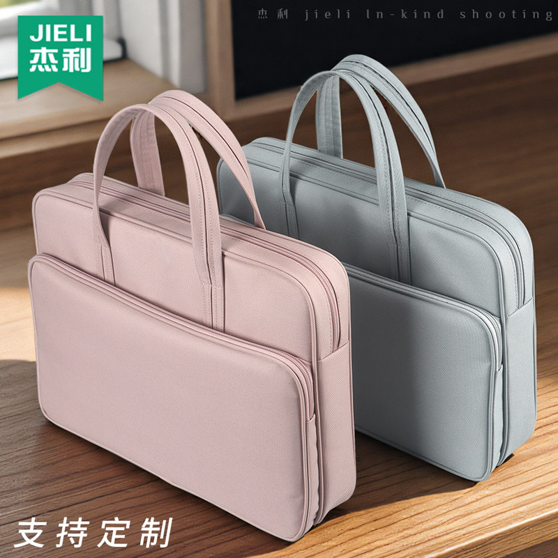 杰利手提文件袋电脑包学生拉链公文包多层大容量帆布包男女士办公会议资料袋档案袋商务文件包牛津布定制logo