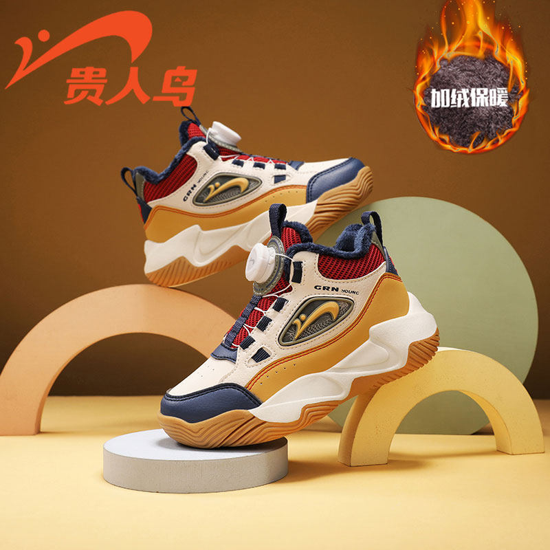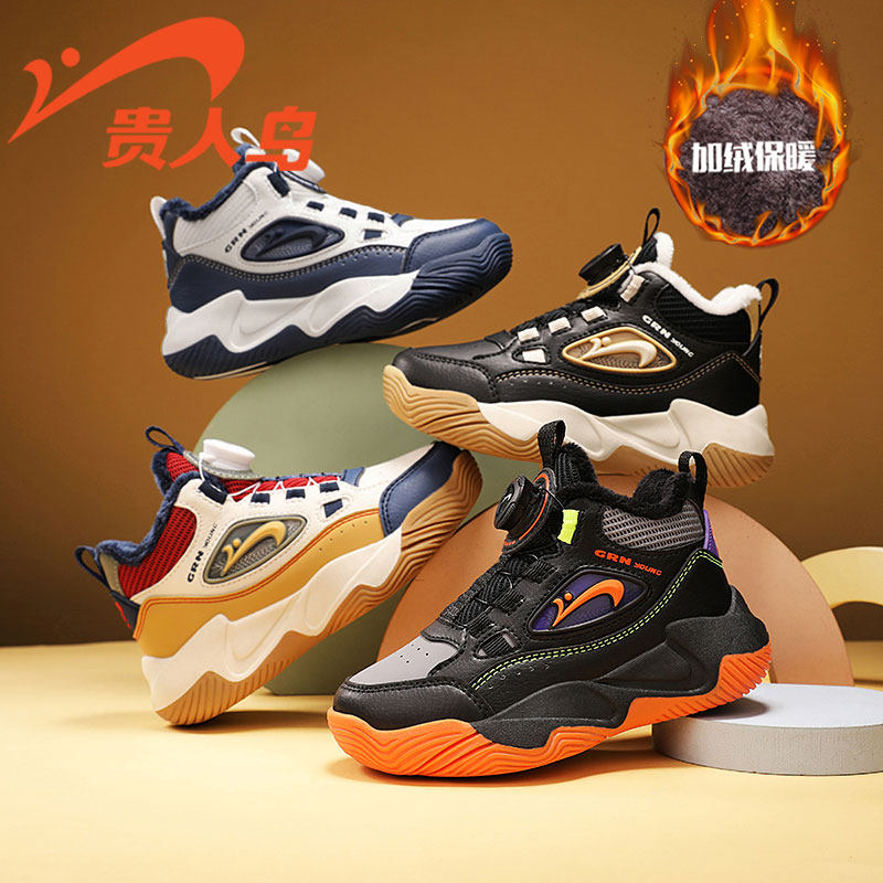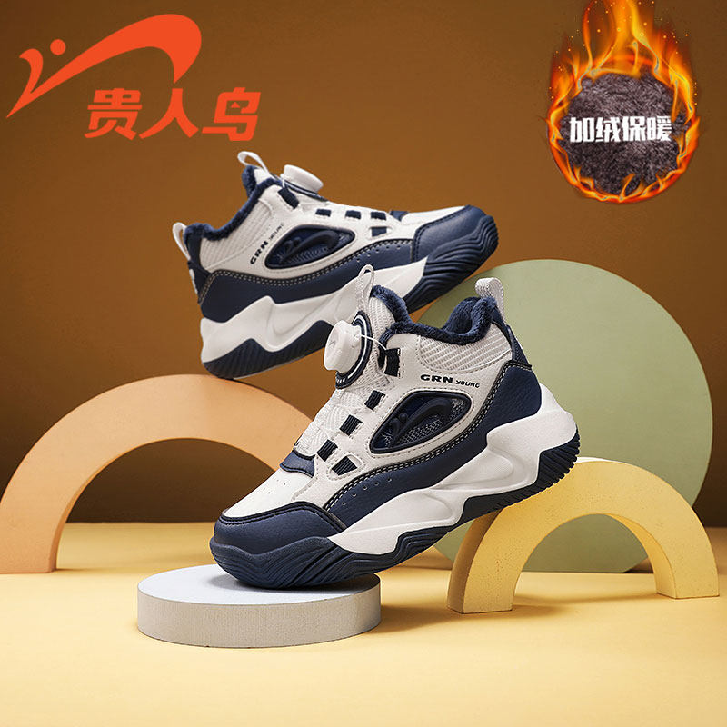 贵人鸟男童鞋子2025新款冬季皮面防水儿童高帮运动鞋加绒保暖棉鞋