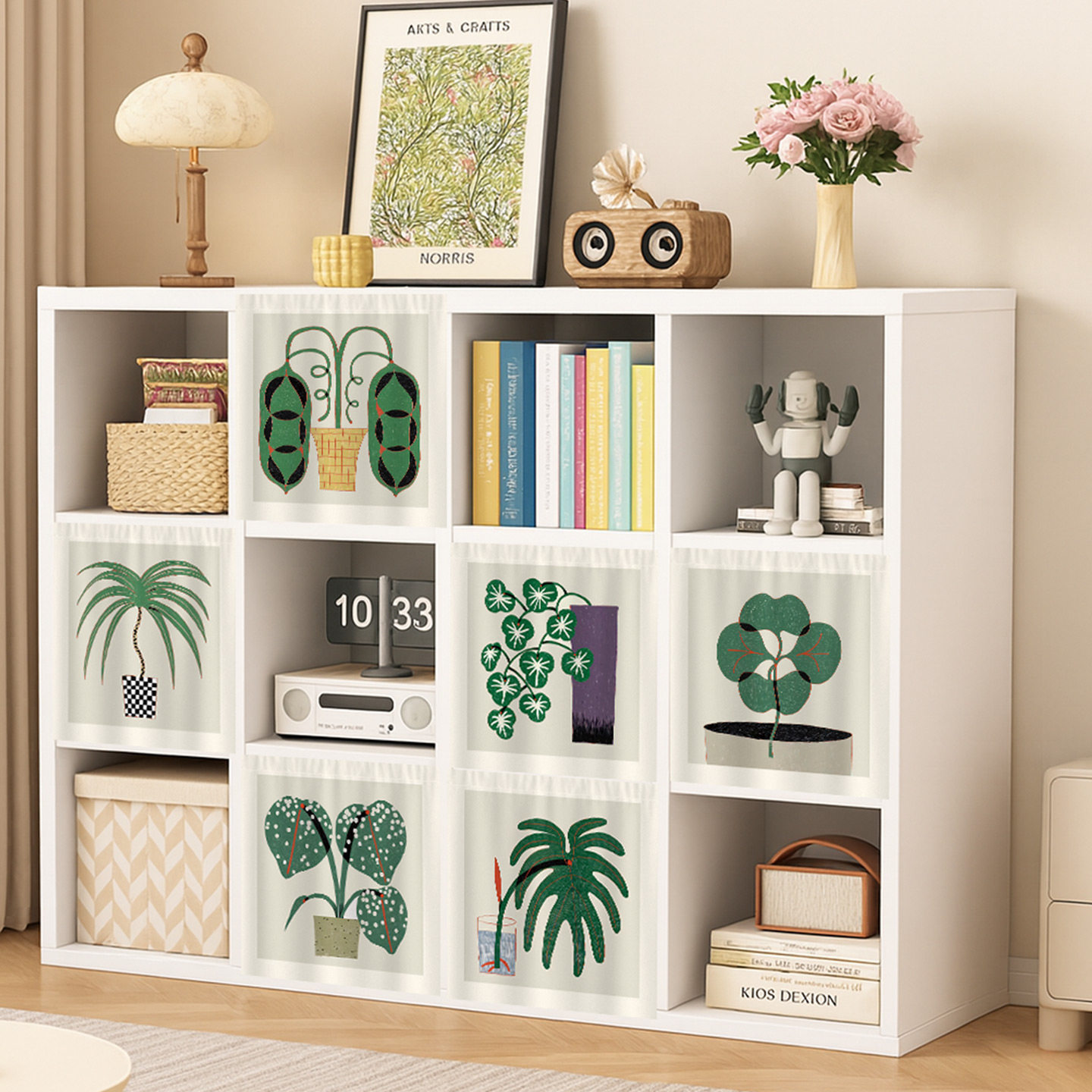 开放格遮挡帘无门柜子免打孔魔术贴置物架家用书柜鞋柜装饰帘定制