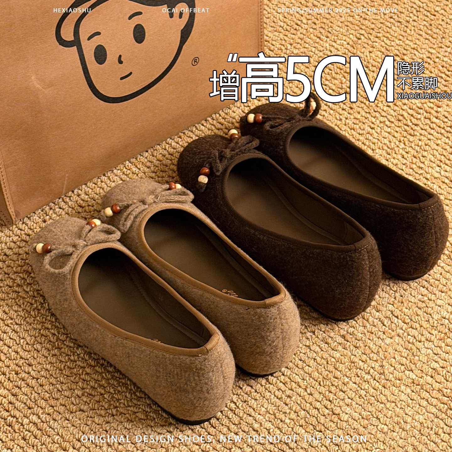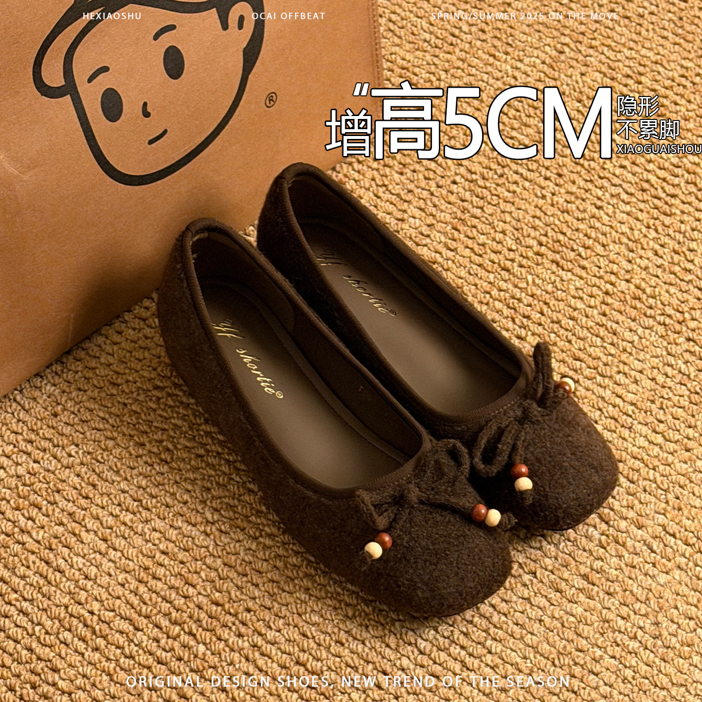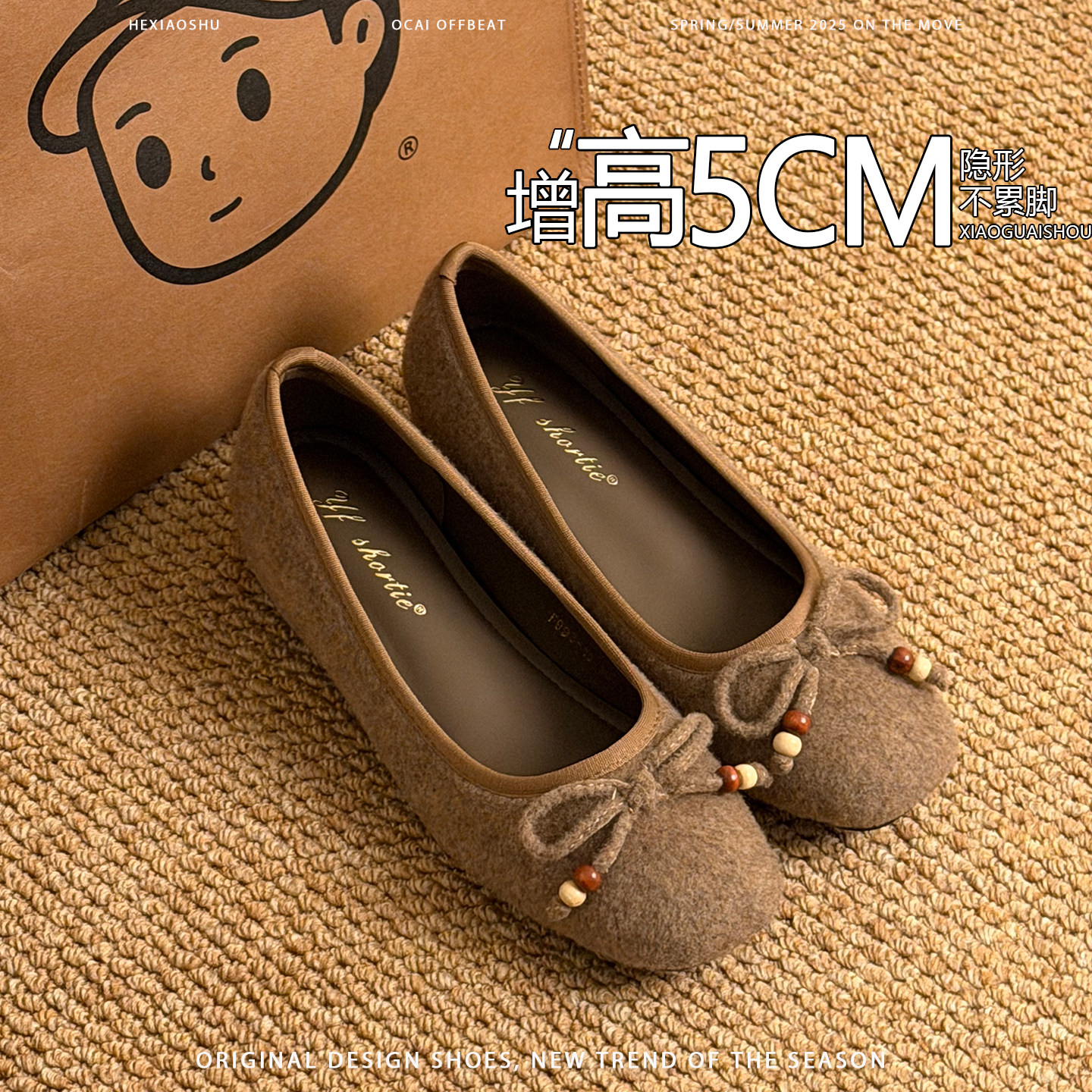 羊皮版内增高蝴蝶结绒面玛丽珍鞋女2026年新款一脚蹬时尚浅口单鞋