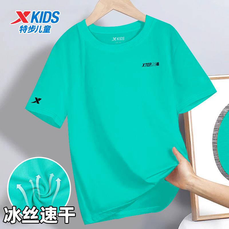 特步儿童短袖男童休闲宽松透气T恤官方正品男童青少年透气速干衣
