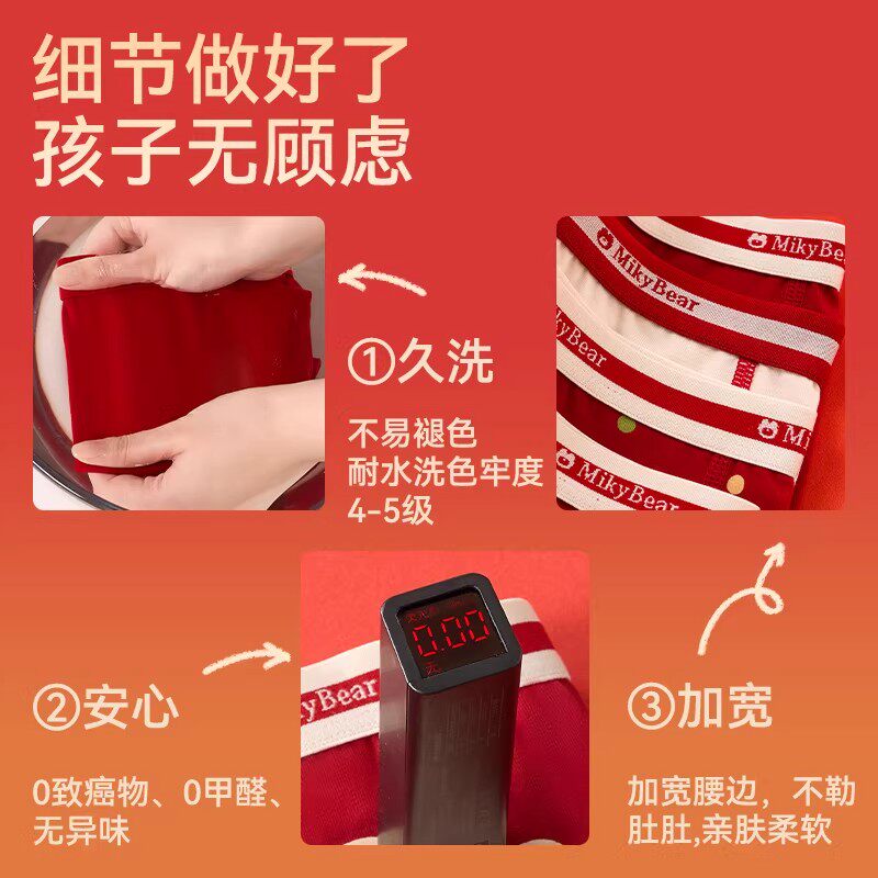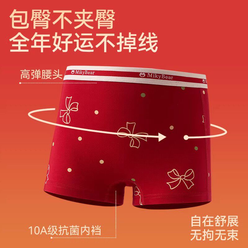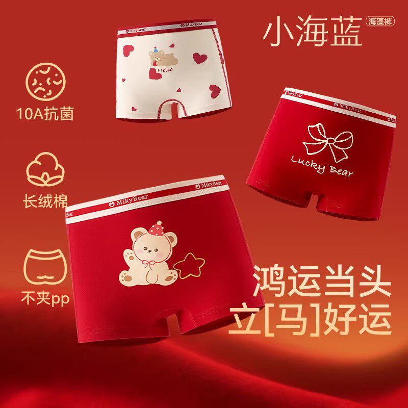 全棉儿童红色内裤女童本命年纯棉平角短款女孩宝宝马年2026新年四