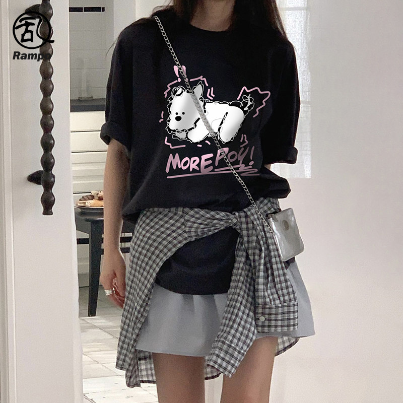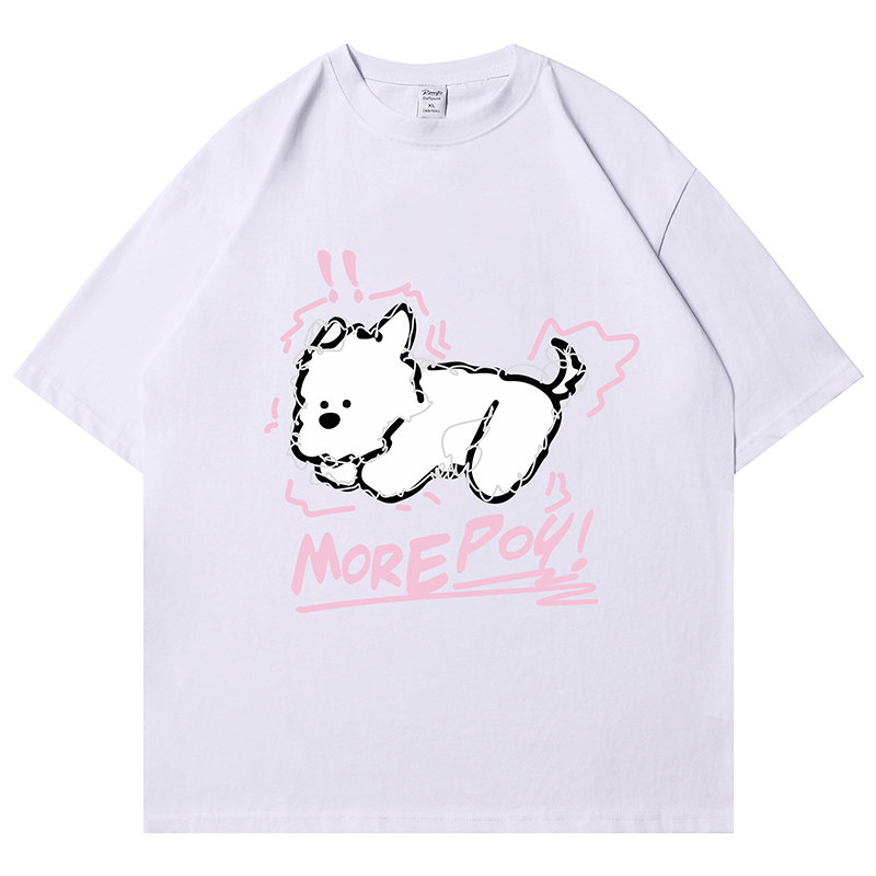 260G纯棉黑色白狗短袖t恤男女款2026新款潮流青少年夏季防晒体恤