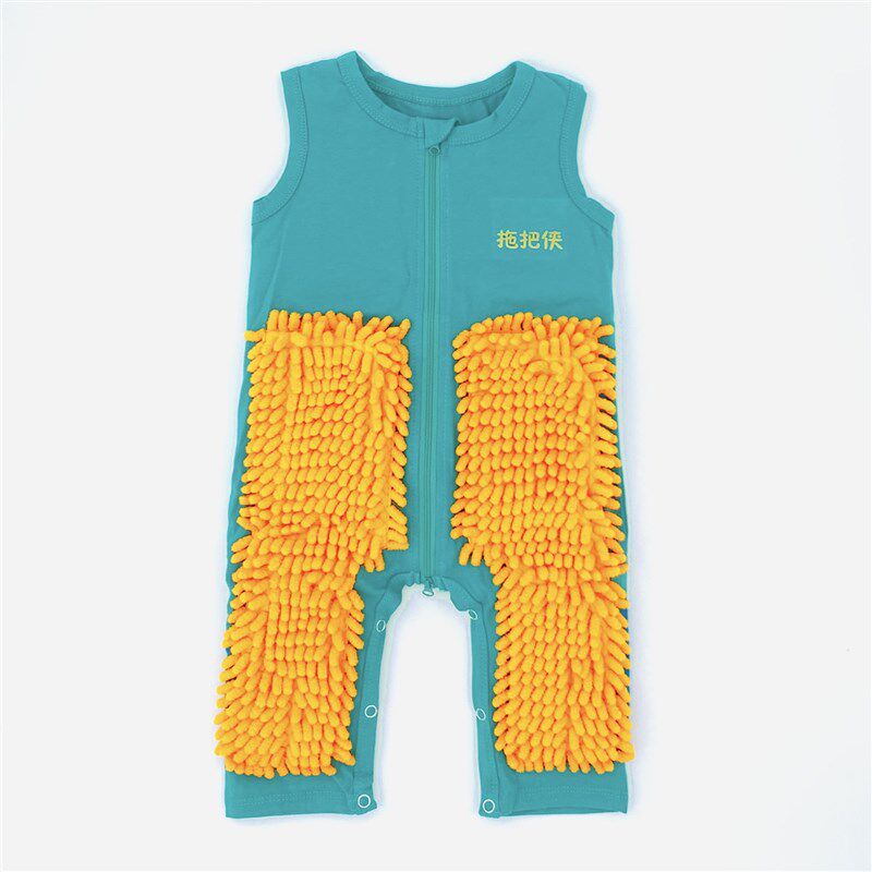 春夏季防脏罩擦地板婴儿爬行服宝拖地爬爬服裤连体衣拖布擦地护膝