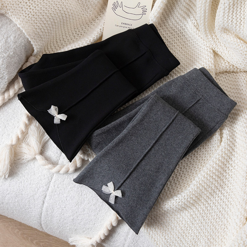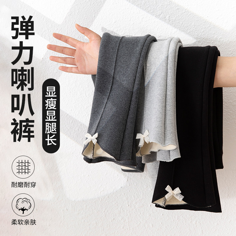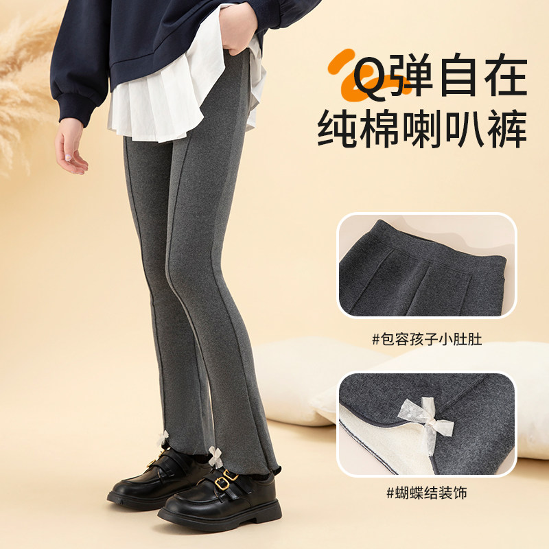女童喇叭裤春秋季纯棉中大童秋冬加绒加厚黑色打底裤子儿童微喇裤