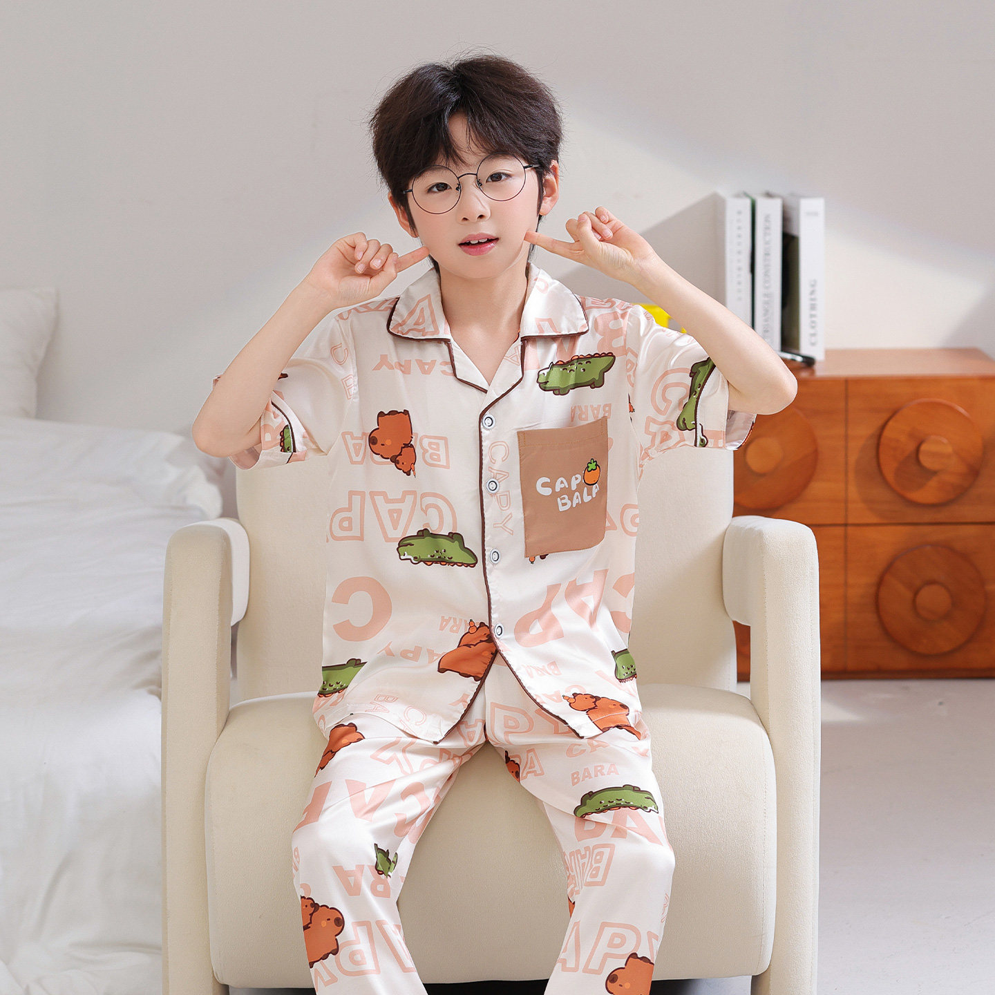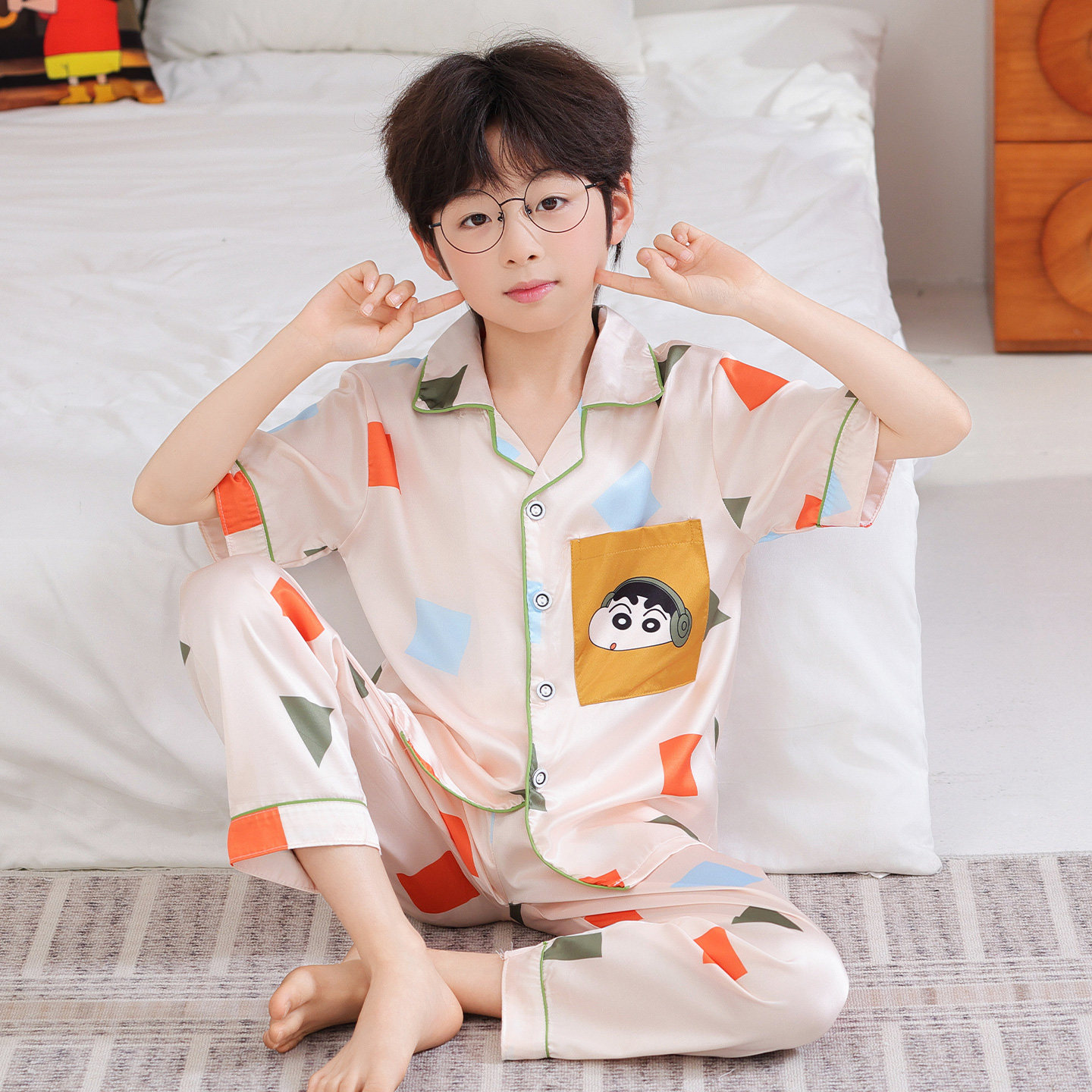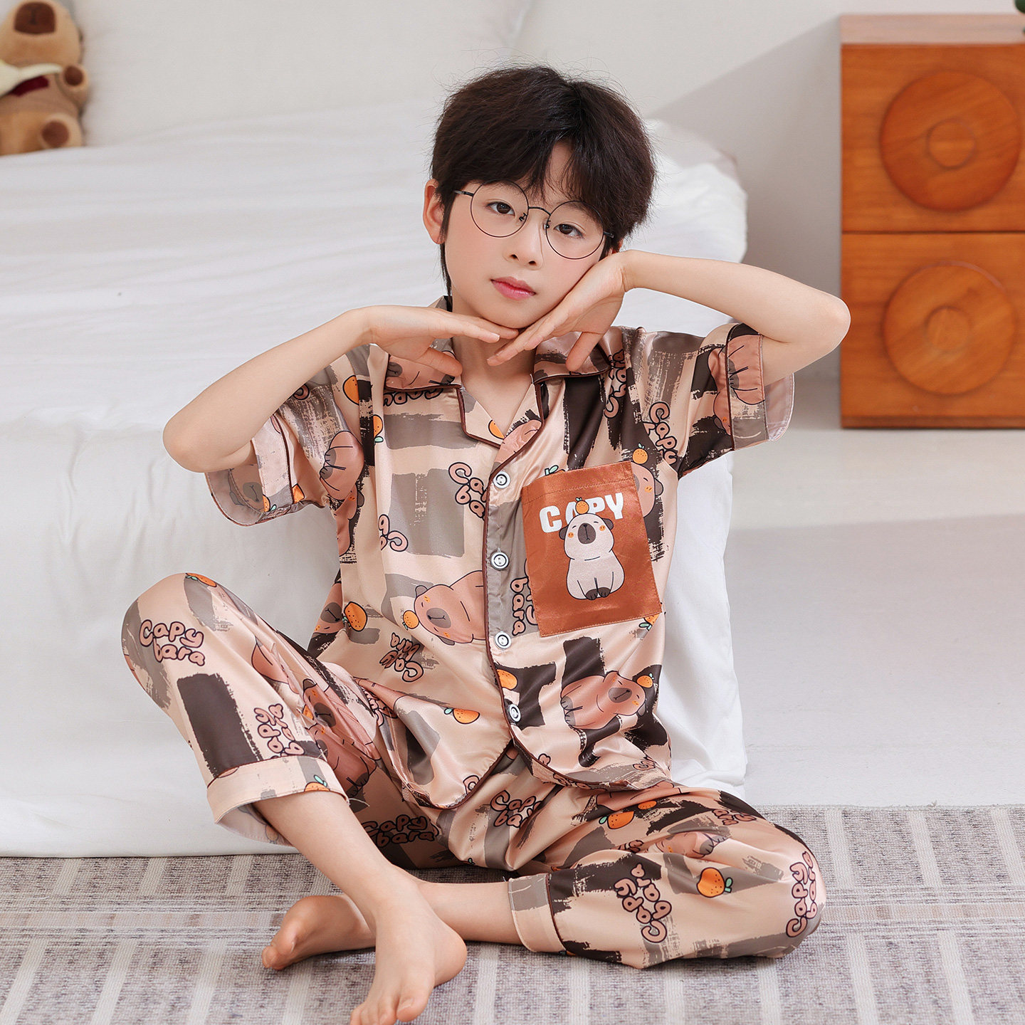 男童睡衣夏季冰丝薄款儿童短袖长裤家居服青少年夏天卡通空调套装