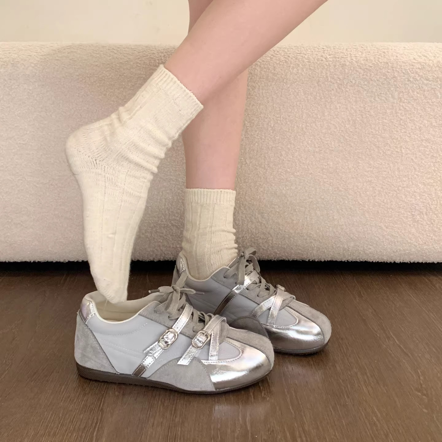 内增高厚底银色德训鞋女2026新款春季休闲板鞋芭蕾风小白鞋阿甘鞋