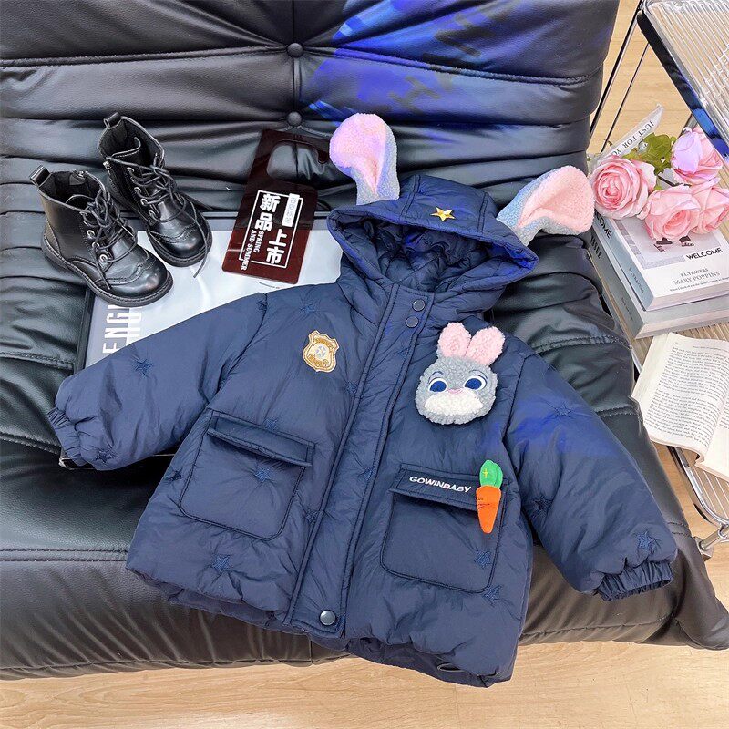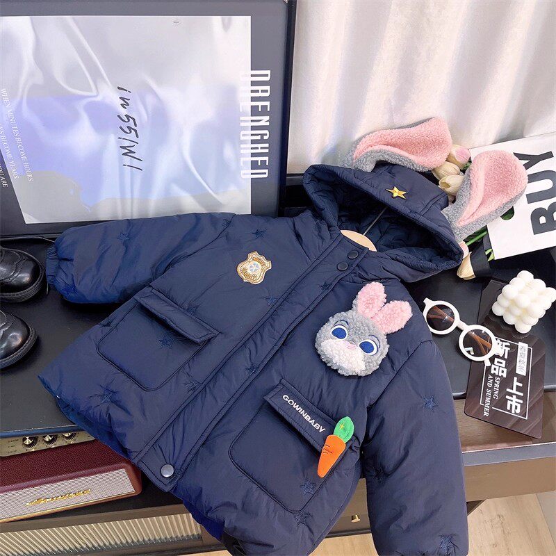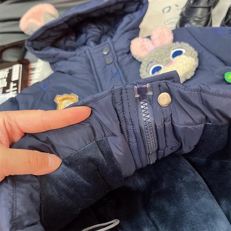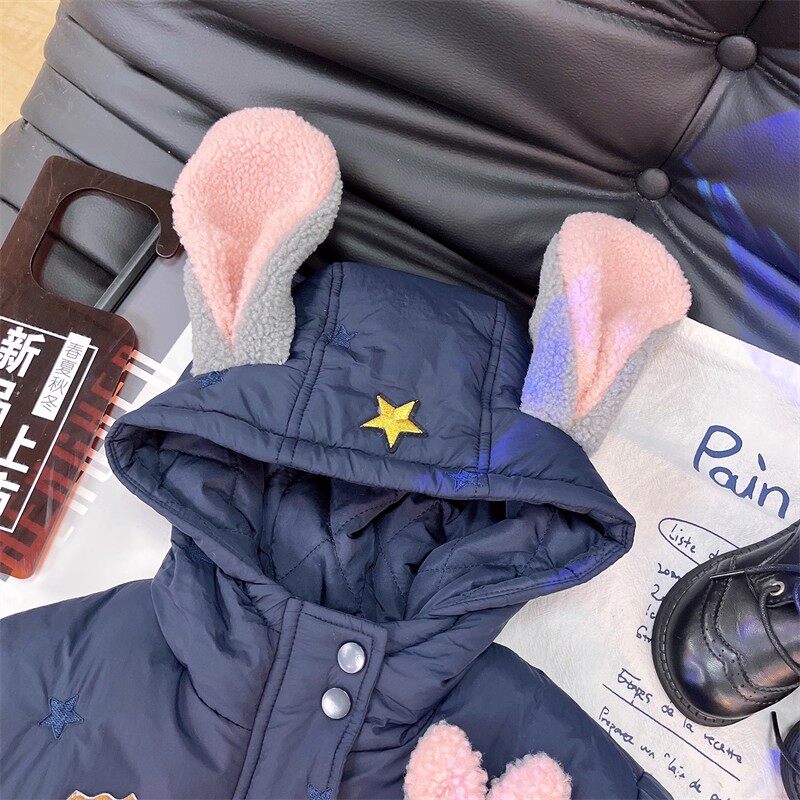 女童加厚加绒卡通连帽棉衣冬季新款宝宝洋气时尚兔子警官棉袄外套