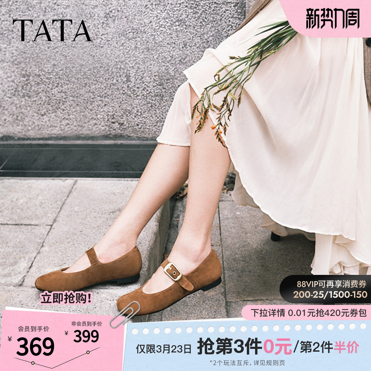 TATA他她狂想曲平底玛丽珍鞋女棕色单鞋软底舒适真皮女鞋7H003AQ6