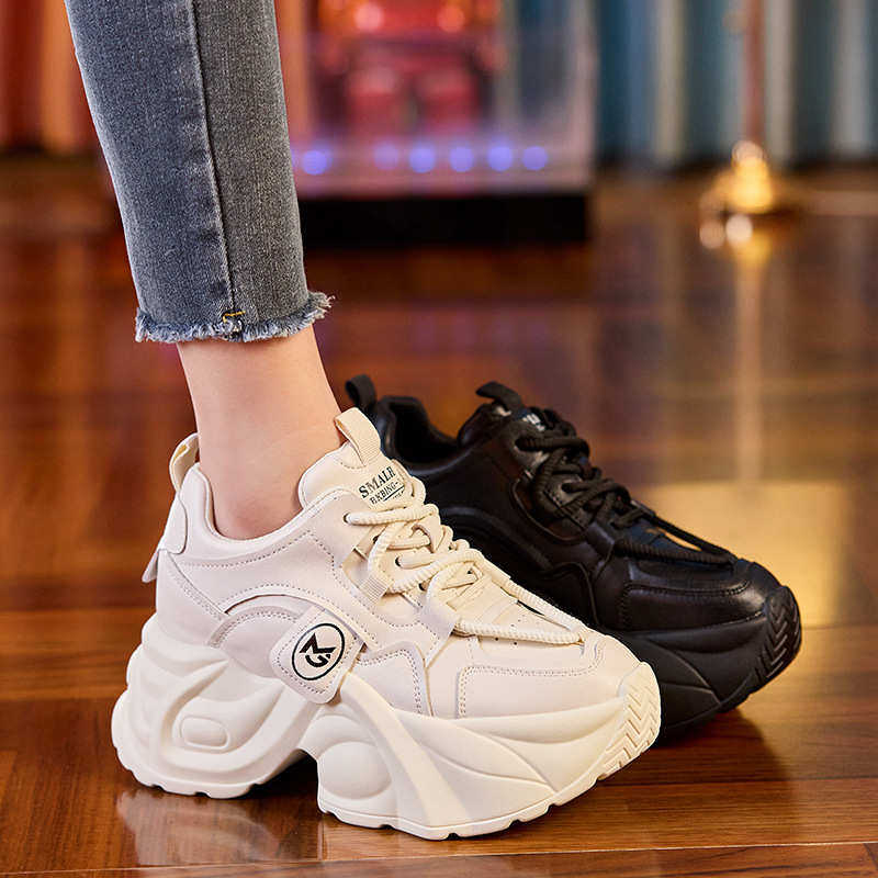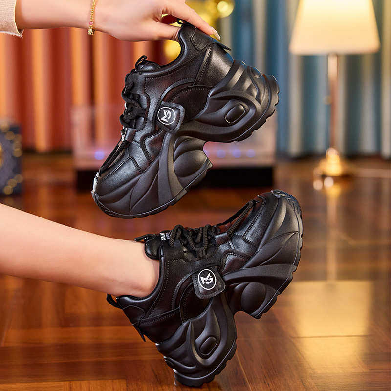 内增高老爹鞋女黑色2025春秋新款百搭松糕鞋小个子厚底女式运动鞋