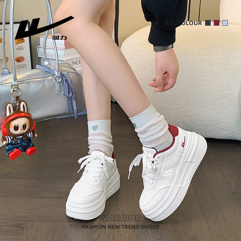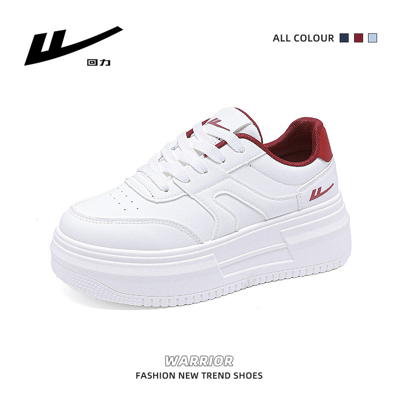 回力女鞋板鞋厚底增高小个子白色皮面松糕厚底鞋运动休闲小白鞋子