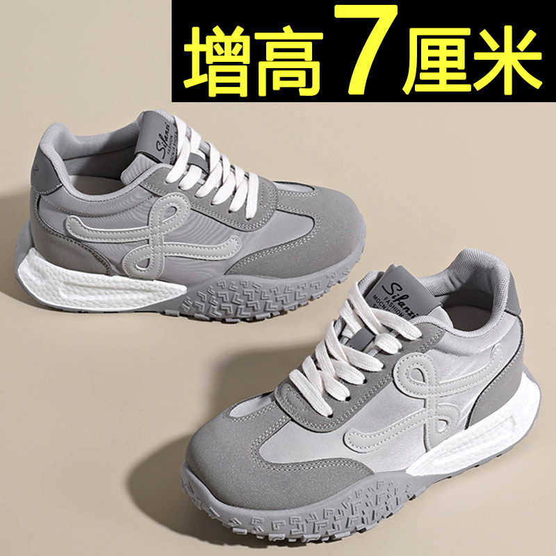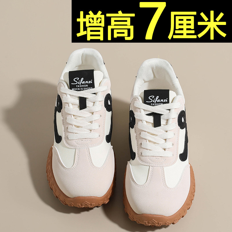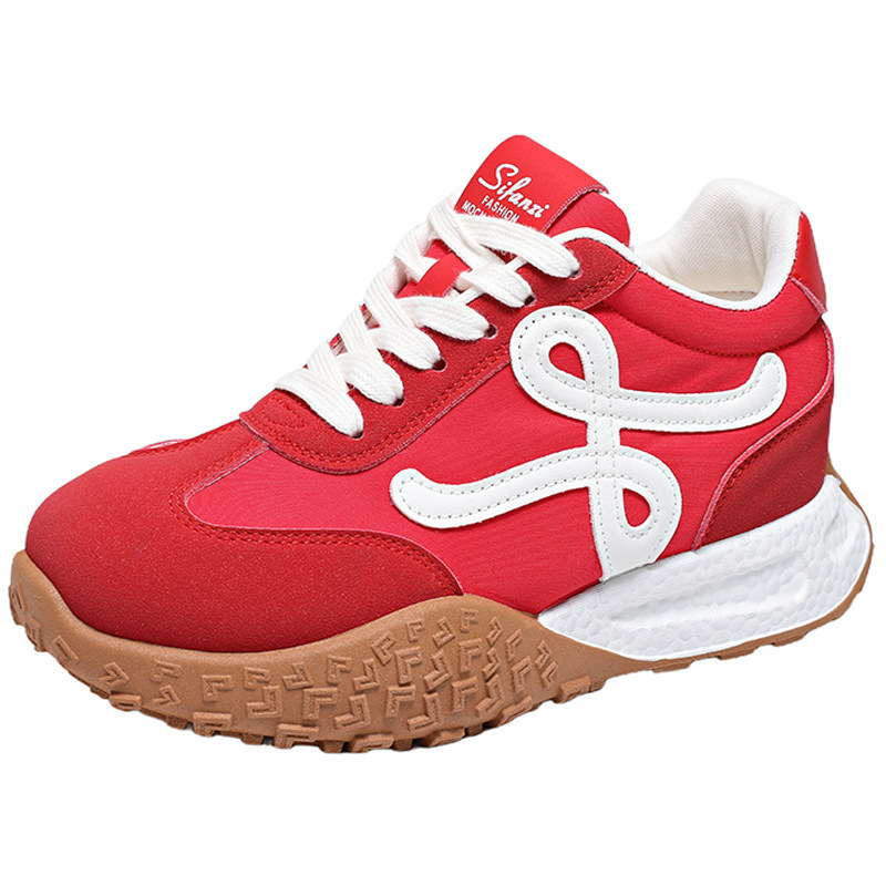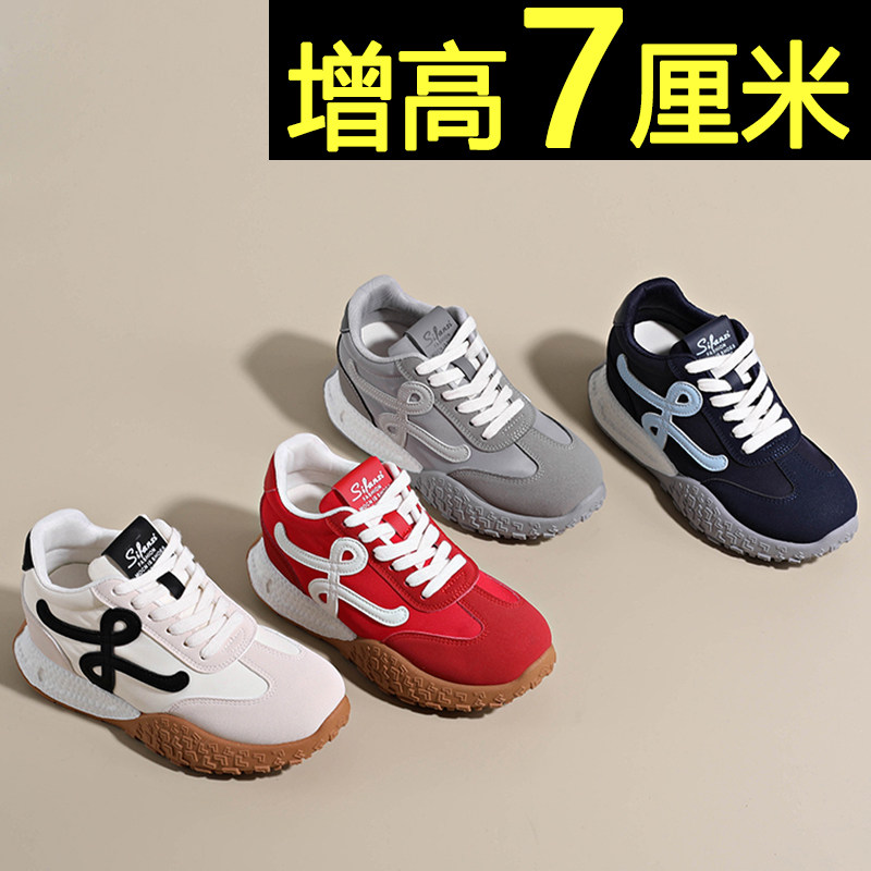 红色德训鞋女2026新款春季百搭轻便内增高老爹鞋厚底休闲运动鞋