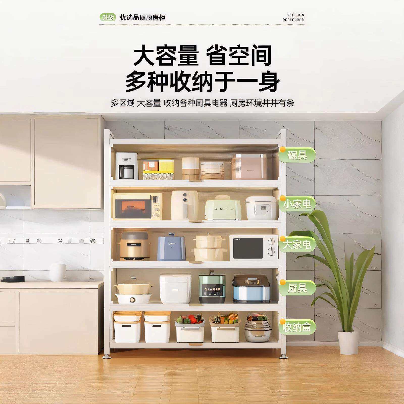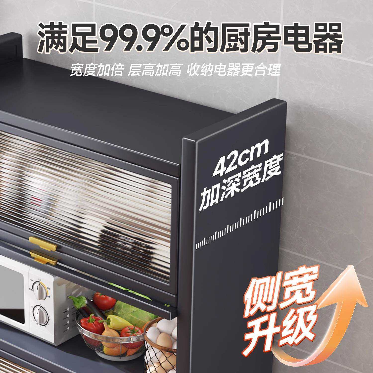 防尘储物柜厨房置物架落地多层收纳柜子微波炉家用带门多功能橱柜