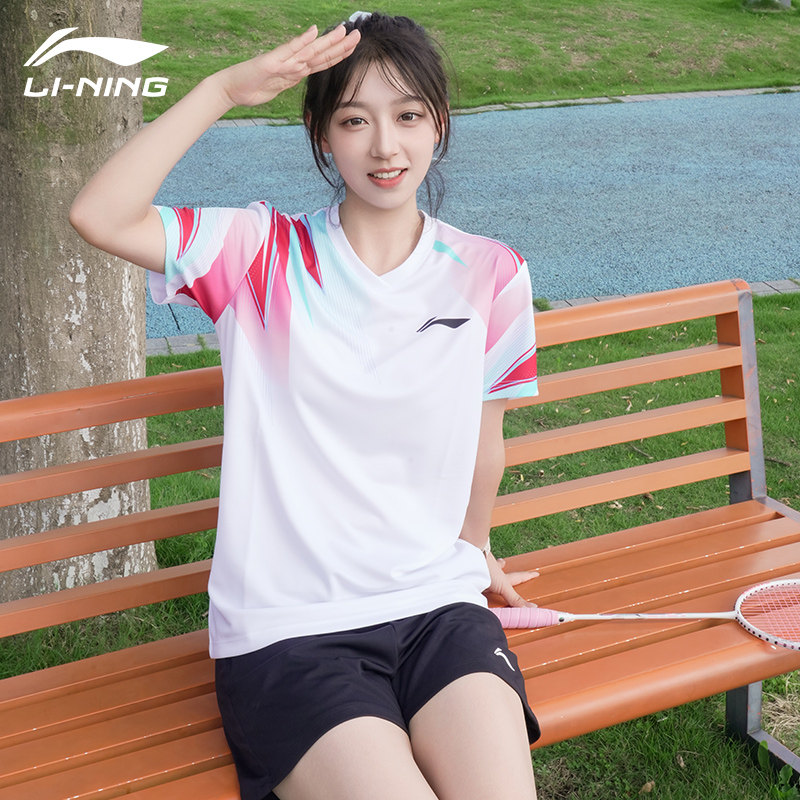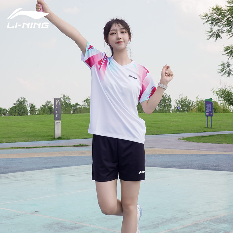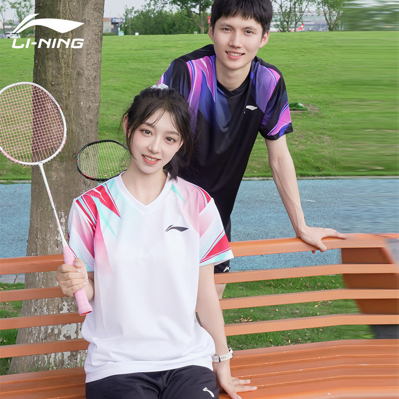 李宁新款羽毛球服男女款俱乐部运动比赛套装速干透气短袖AATV011