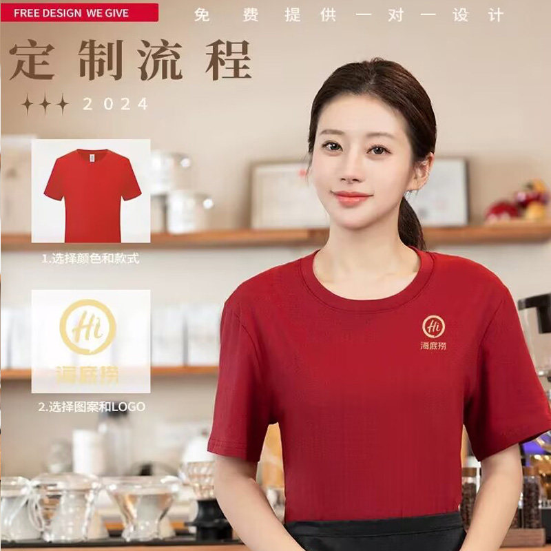 餐饮服务员工作服T恤定制火锅奶茶店文化衫夏季短袖纯棉圆领工衣