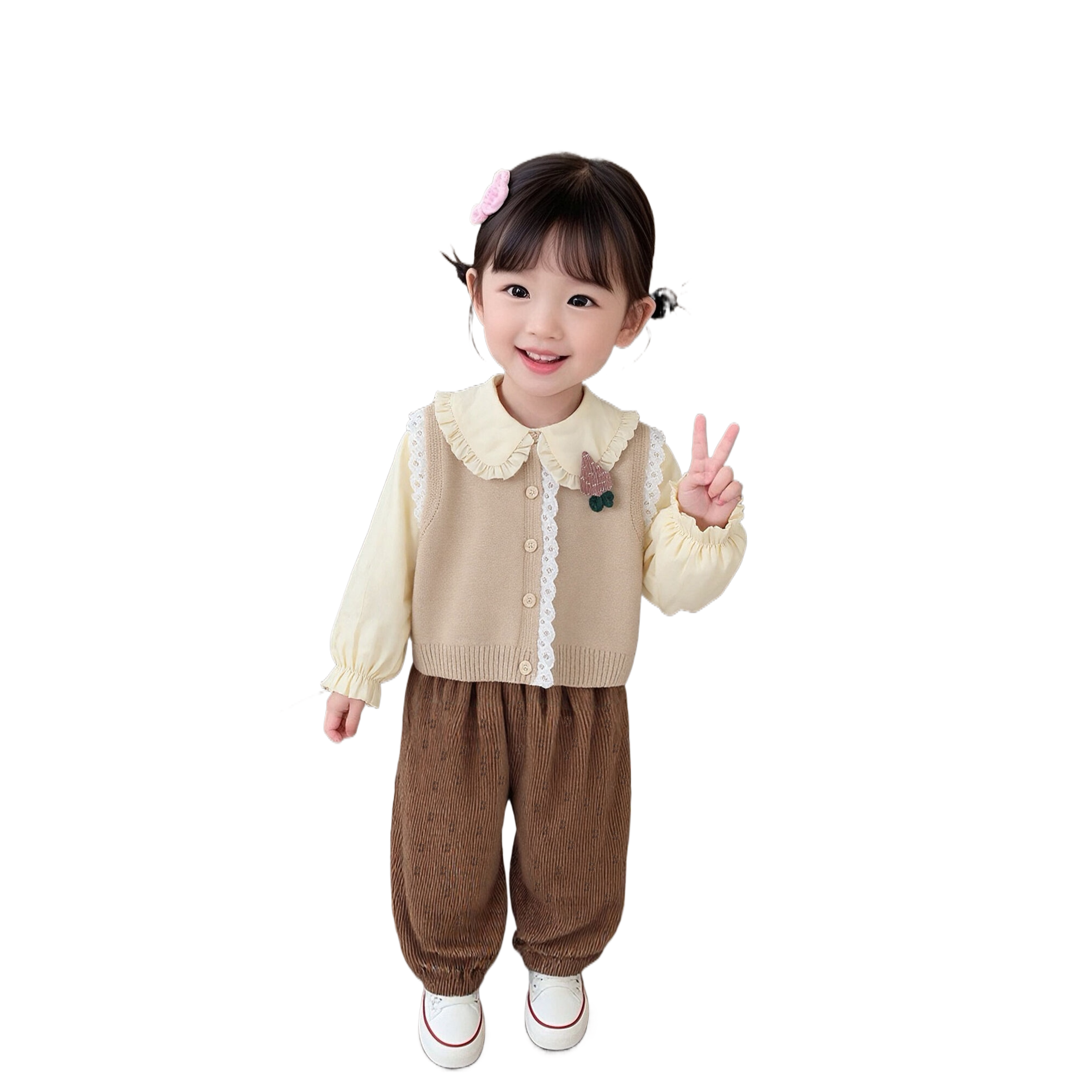 女童秋装套装新款洋气时髦女宝宝毛衣马甲三件套韩版春秋季婴儿童