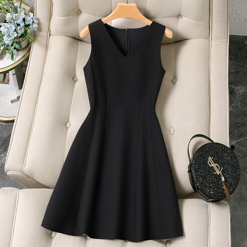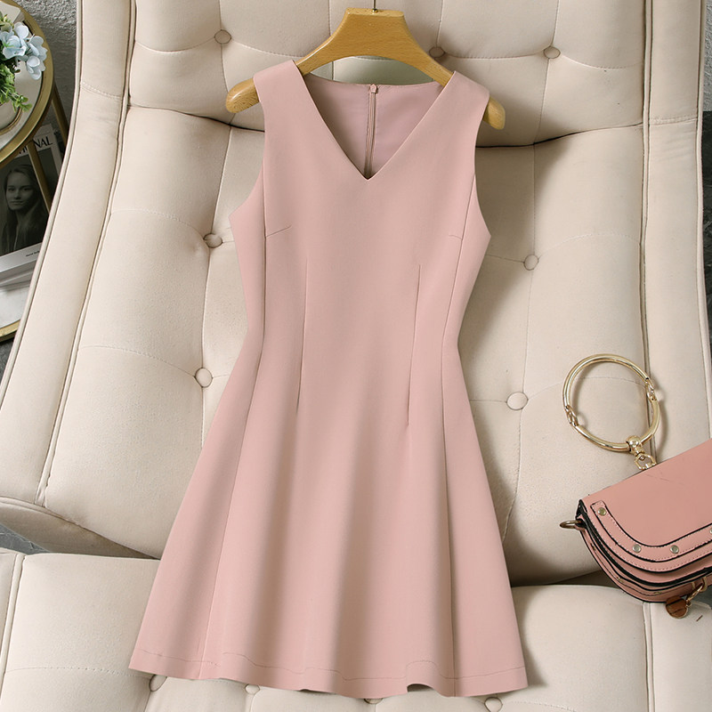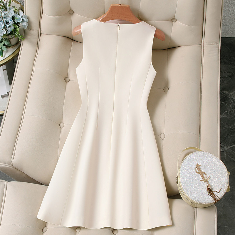 白色无袖V领连衣裙女2026款夏法式小个子高级感收腰显瘦小白短裙