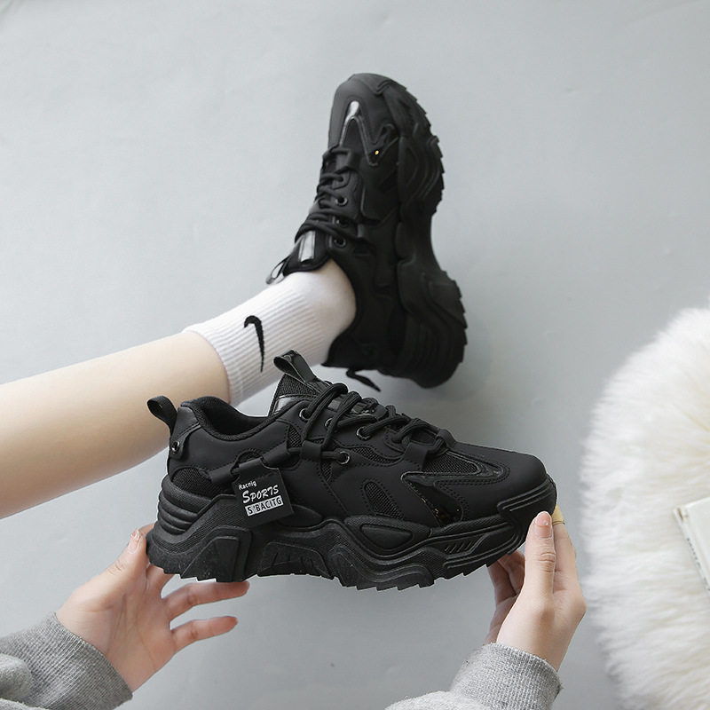 正品黑色老爹鞋女款久站不累脚运动鞋夏季软底防滑防水上班工作鞋