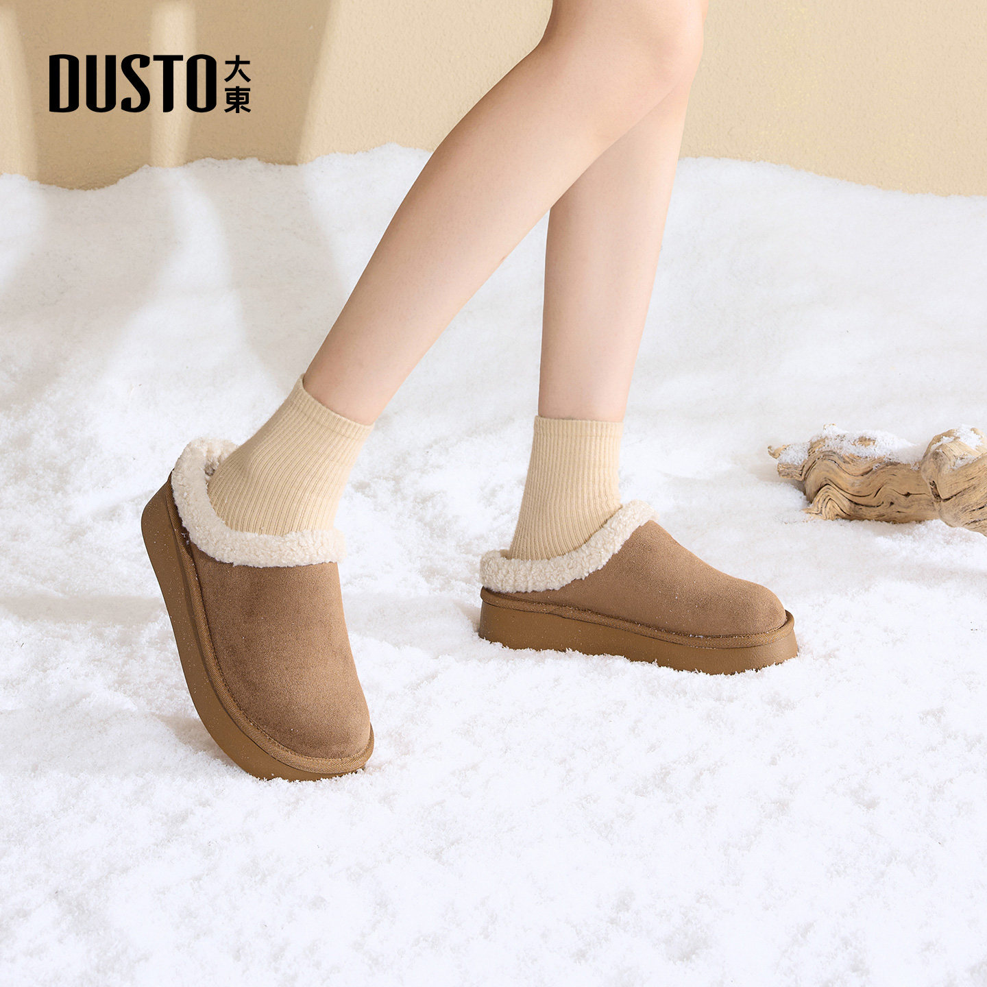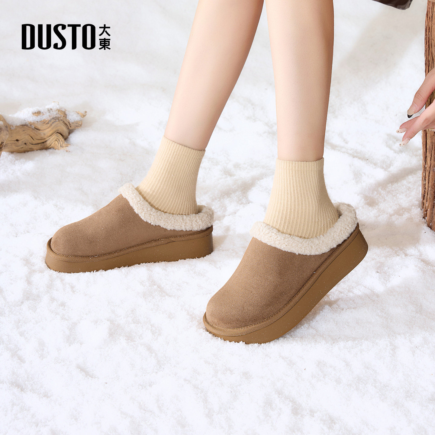 大东厚底毛毛包头半拖鞋女款2026新款秋冬加绒保暖棉拖勃肯雪地靴